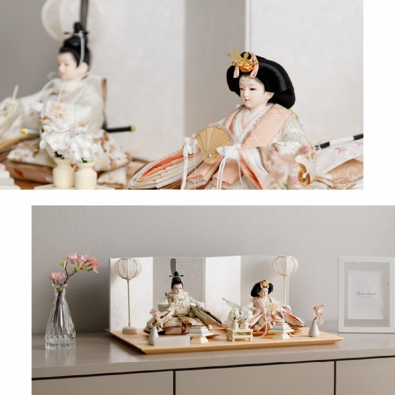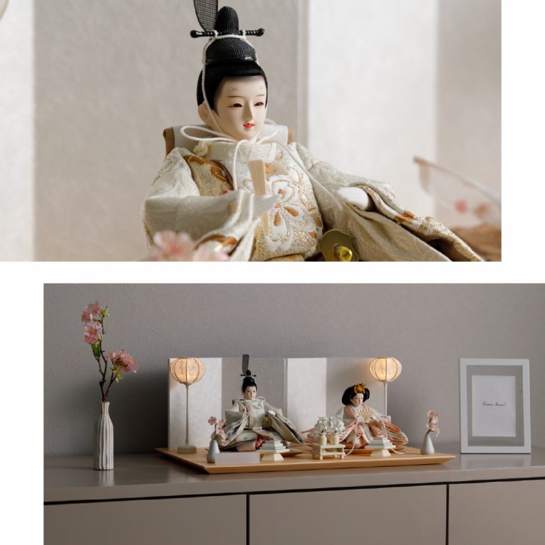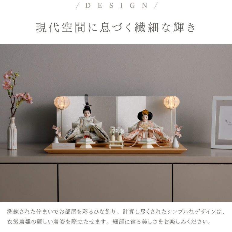 人形のお顔、飾り台、お道具まですべてにこだわり抜いて制作した、preferプロデュースの雛人形。熟練の職人たちがその技術を惜しみなく注いだ、本格派かつ高級志向のハイグレードなおひな様です。流行に左右されないシンプルモダンなスタイルのひな飾りは、時代を超えてどんな日の雛祭りにも華を添えます。衣裳着雛人形の美しい着姿を楽しめる親王飾り。かわいいお顔のお殿様とお姫様が優しく微笑みます。省スペースで楽しめる超コンパクトサイズ。存在感を放ちつつインテリアのようにお部屋に溶け込みます。煌めく金糸を用いた金襴衣裳は、おめでたい日の雰囲気をいっそう盛り上げてくれるでしょう。飾り台には肌目の美しい檜(ヒノキ)の台座を使用。趣深い白の四曲屏風と共に、ひな人形のお衣裳を引き立てます。組立て不要な平飾りタイプは設置もお手軽。繊細で美しいお道具もセットになり、華やかかつ豪華な雛飾りに仕上げました。可愛い雪洞はコードレスタイプです。初節句のお祝いやギフトにおすすめの、最高級の逸品です。