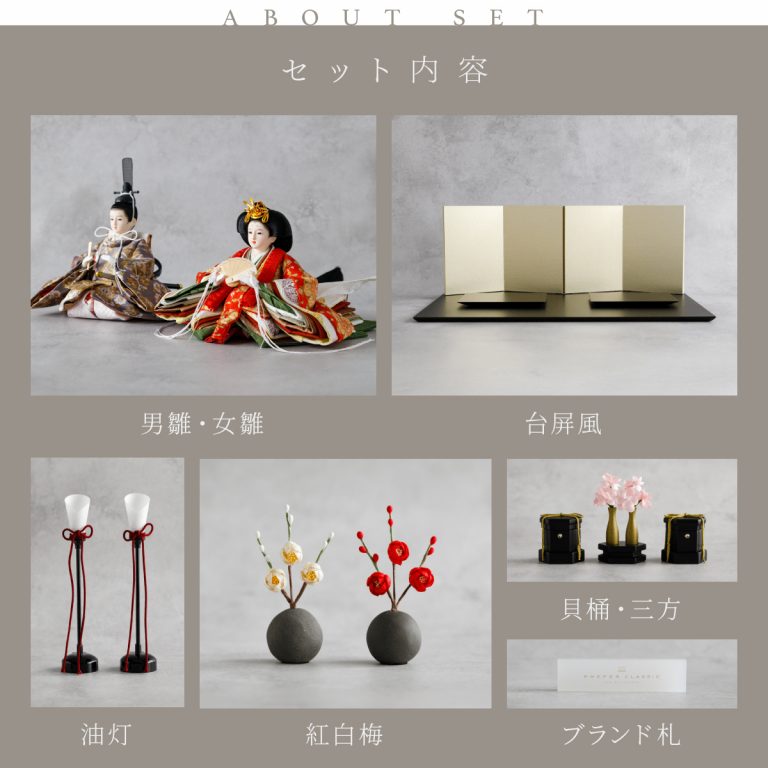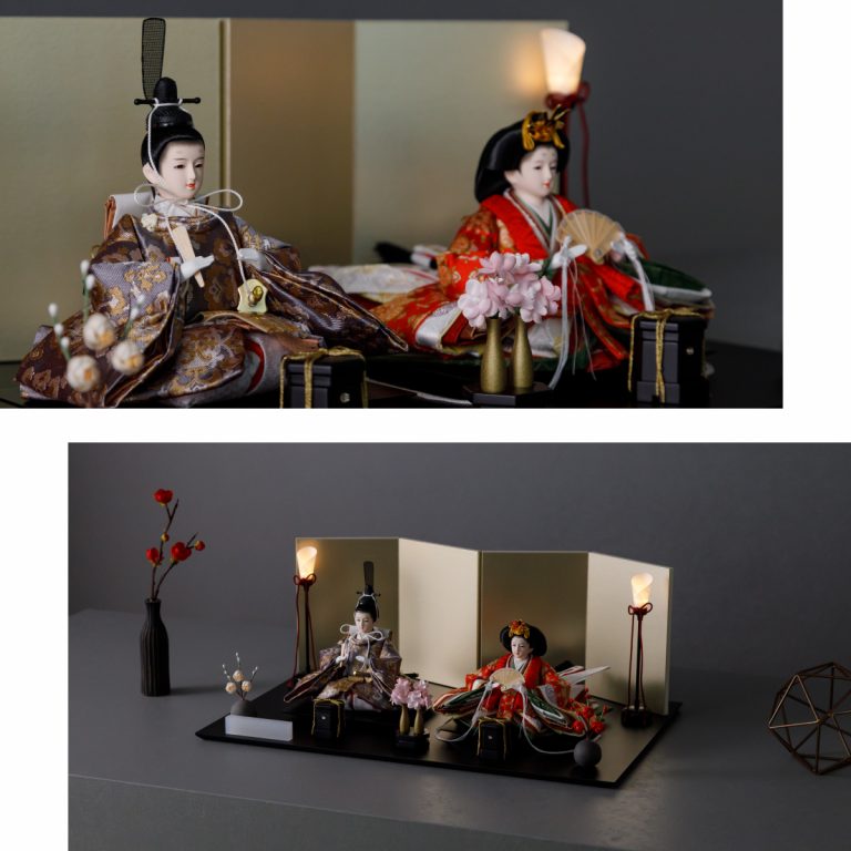 人形のお顔、飾り台、お道具まですべてにこだわり抜いて制作した、preferプロデュースの雛人形。熟練の職人たちがその技術を惜しみなく注いだ、本格派かつ高級志向のハイグレードなおひな様です。流行に左右されないシンプルモダンなスタイルのひな飾りは、時代を超えてどんな日の雛祭りにも華を添えます。衣裳着雛人形の美しい着姿を楽しめる親王飾り。かわいいお顔のお殿様とお姫様が優しく微笑みます。省スペースで楽しめる超コンパクトサイズ。存在感を放ちつつインテリアのようにお部屋に溶け込みます。高級感あふれる正絹生地のお衣裳は、おめでたい日の雰囲気をいっそう盛り上げてくれるでしょう。飾り台には主役のお人形が映える黒一色の台座を使用。華やかな金の四曲屏風と共に、ひな人形のお衣裳を引き立てます。組立て不要な平飾りタイプは設置もお手軽。繊細で美しいお道具もセットになり、華やかかつ豪華な雛飾りに仕上げました。雛人形を照らす可愛い油灯はコードレス式。女の子の初節句のお祝いやギフトにおすすめのおひな様です。