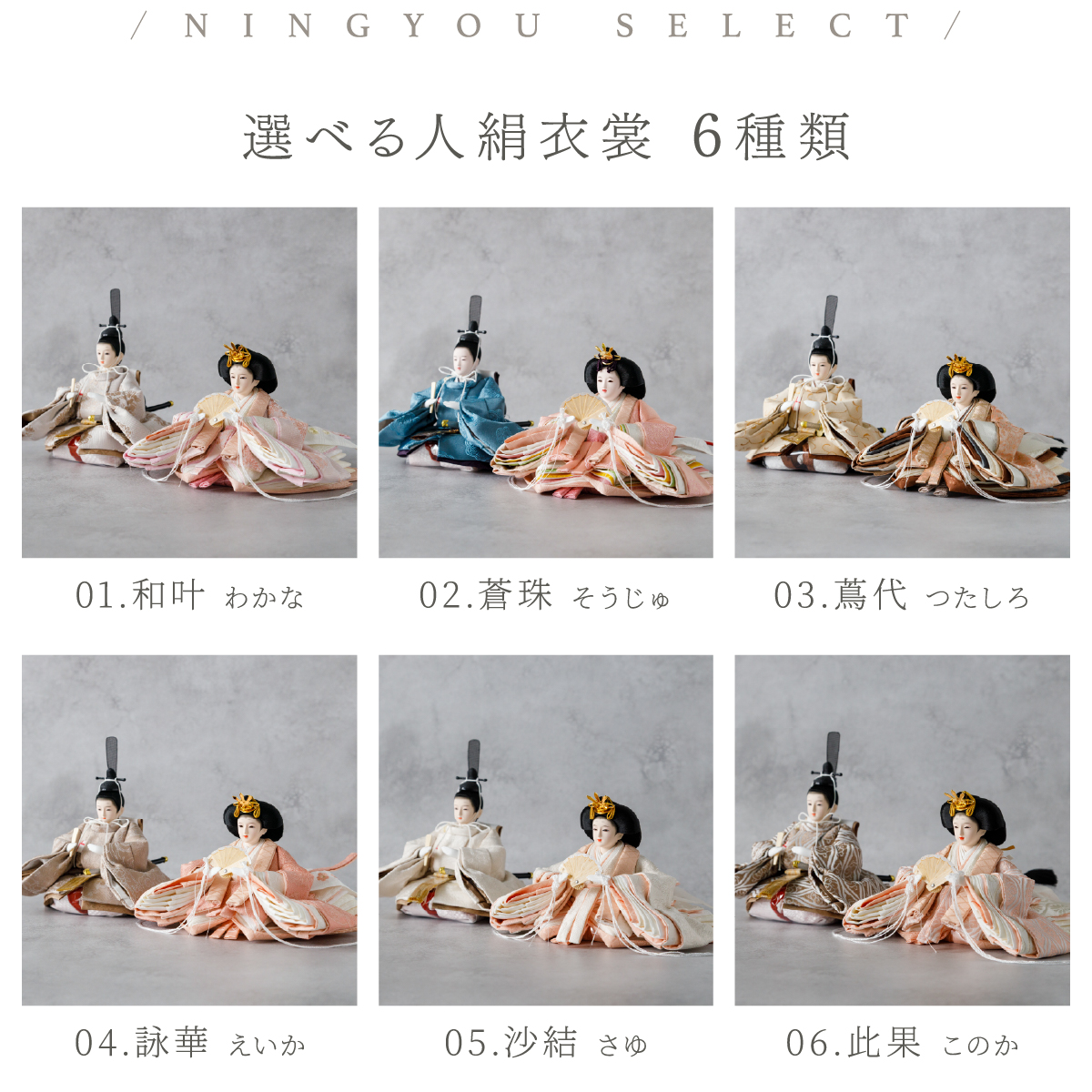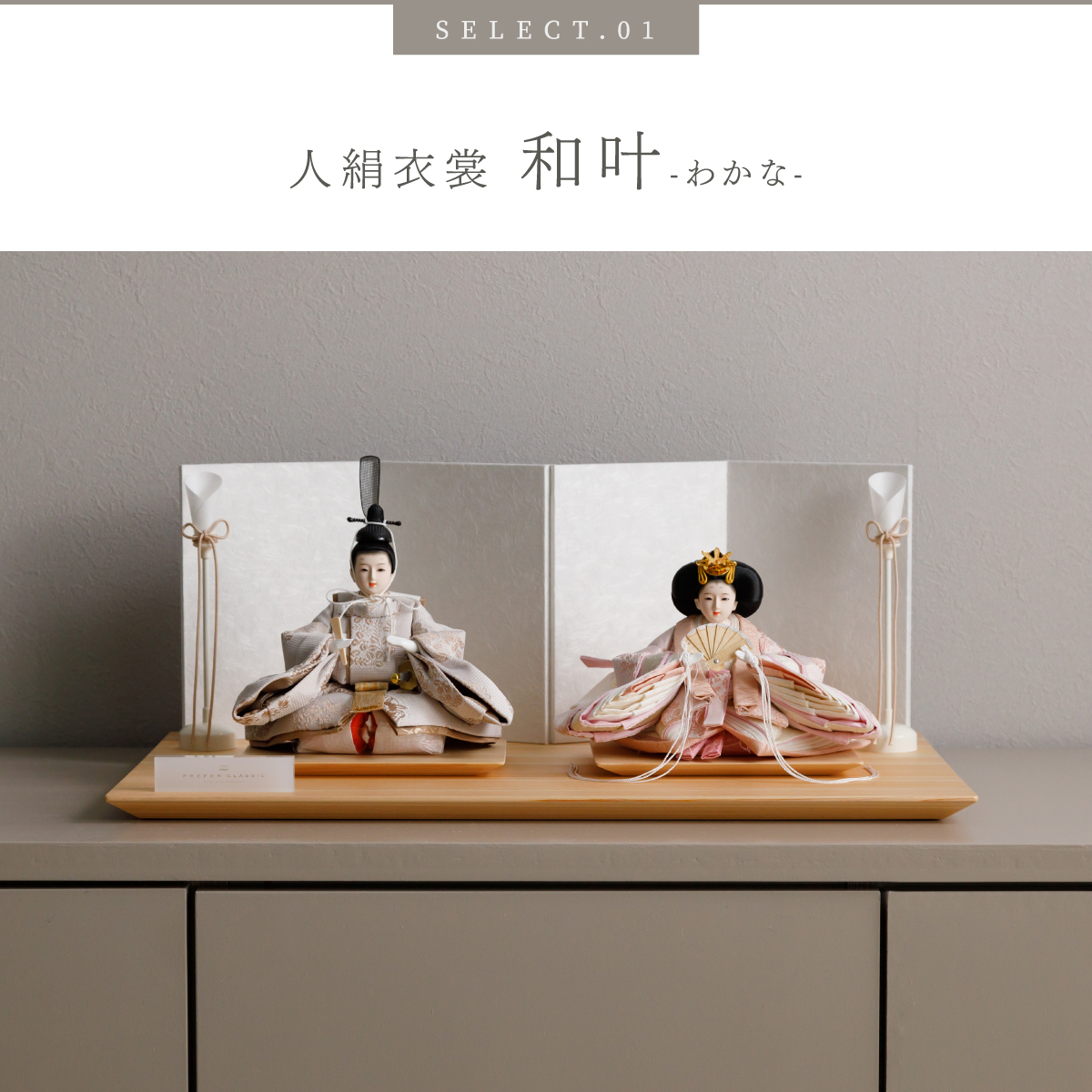 PREFER CLASSIC ひな人形 [檜台 白屏風 平飾り 人形極小サイズ 選べる人絹衣裳6種類 和叶 蒼珠 蔦代 詠華 沙結 此果 選べる灯り2種 油灯 雪洞]