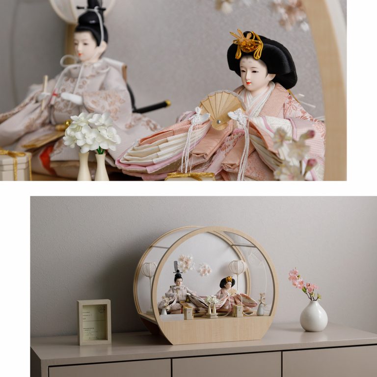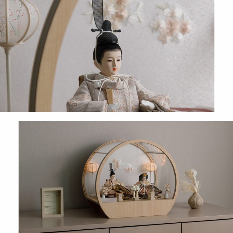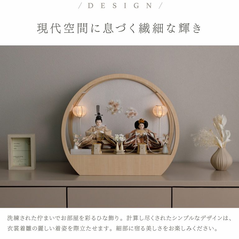 人形のお顔、飾り台、お道具まですべてにこだわり抜いて制作した、preferプロデュースの雛人形。熟練の職人たちがその技術を惜しみなく注いだ、本格派かつ高級志向のハイグレードなおひな様です。流行に左右されないシンプルモダンなスタイルのひな飾りは、時代を超えてどんな日の雛祭りにも華を添えます。衣裳着雛人形の美しい着姿を楽しめる親王飾り。かわいいお顔のお殿様とお姫様が優しく微笑みます。省スペースで楽しめる超コンパクトサイズ。存在感を放ちつつインテリアのようにお部屋に溶け込みます。上品な艶と色合いが美しい人絹生地のお衣裳は、おめでたい日の雰囲気をいっそう盛り上げてくれるでしょう。飾り台は上品な曲線を描く丸型ケース。前開きタイプのケース飾りは、飾り付けもお手入れもお手軽です。繊細で美しいお道具もセットになり、華やかかつ豪華な雛飾りに仕上げました。可愛い雪洞はコードレスタイプです。初節句のお祝いやギフトにおすすめの、最高級の逸品です。