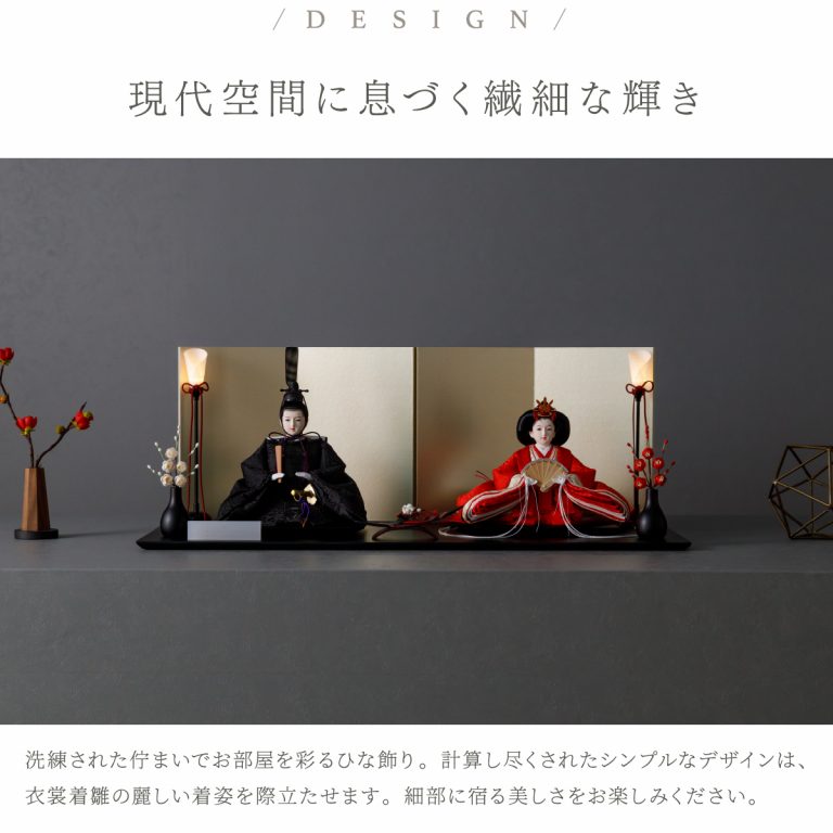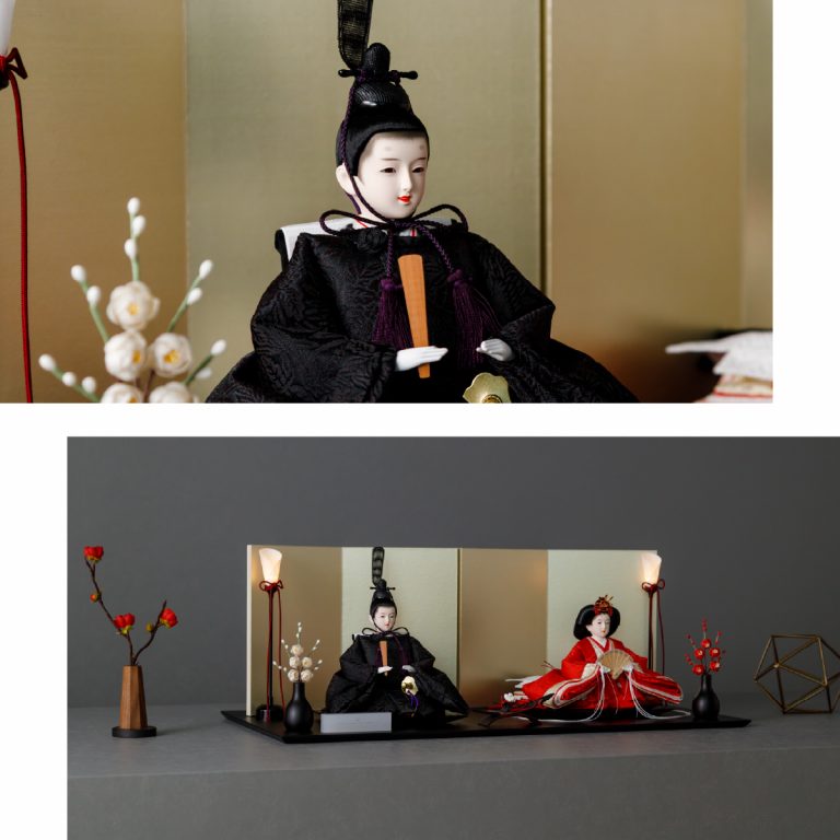 人形のお顔、飾り台、お道具まですべてにこだわり抜いて制作した、preferプロデュースの雛人形。熟練の職人たちがその技術を惜しみなく注いだ、本格派かつ高級志向のハイグレードなおひな様です。流行に左右されないシンプルモダンなスタイルのひな飾りは、時代を超えてどんな日の雛祭りにも華を添えます。衣裳着雛人形の美しい着姿を楽しめる親王飾り。かわいいお顔のお殿様とお姫様が優しく微笑みます。程よくコンパクトなサイズ感。存在感を放ちつつインテリアのようにお部屋に溶け込みます。上品な艶と色合いが美しい人絹生地のお衣裳は、おめでたい日の雰囲気をいっそう盛り上げてくれるでしょう。飾り台には主役のお人形が映える黒一色の台座を使用。華やかな金の四曲屏風と共に、ひな人形のお衣裳を引き立てます。組立て不要な平飾りタイプは設置もお手軽。繊細で美しいお道具もセットになり、華やかかつ豪華な雛飾りに仕上げました。雛人形を照らす可愛い油灯はコードレス式。女の子の初節句のお祝いやギフトにおすすめのおひな様です。