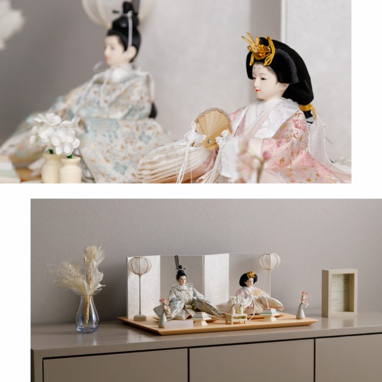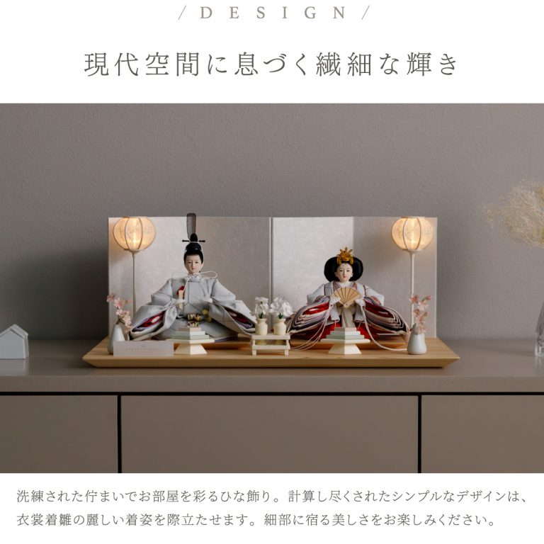 人形のお顔、飾り台、お道具まですべてにこだわり抜いて制作した、preferプロデュースの雛人形。熟練の職人たちがその技術を惜しみなく注いだ、本格派かつ高級志向のハイグレードなおひな様です。流行に左右されないシンプルモダンなスタイルのひな飾りは、時代を超えてどんな日の雛祭りにも華を添えます。衣裳着雛人形の美しい着姿を楽しめる親王飾り。かわいいお顔のお殿様とお姫様が優しく微笑みます。省スペースで楽しめる超コンパクトサイズ。存在感を放ちつつインテリアのようにお部屋に溶け込みます。高級感あふれる正絹生地のお衣裳は、おめでたい日の雰囲気をいっそう盛り上げてくれるでしょう。飾り台には肌目の美しい檜(ヒノキ)の台座を使用。趣深い白の四曲屏風と共に、ひな人形のお衣裳を引き立てます。組立て不要な平飾りタイプは設置もお手軽。繊細で美しいお道具もセットになり、華やかかつ豪華な雛飾りに仕上げました。可愛い雪洞はコードレスタイプです。初節句のお祝いやギフトにおすすめの、最高級の逸品です。