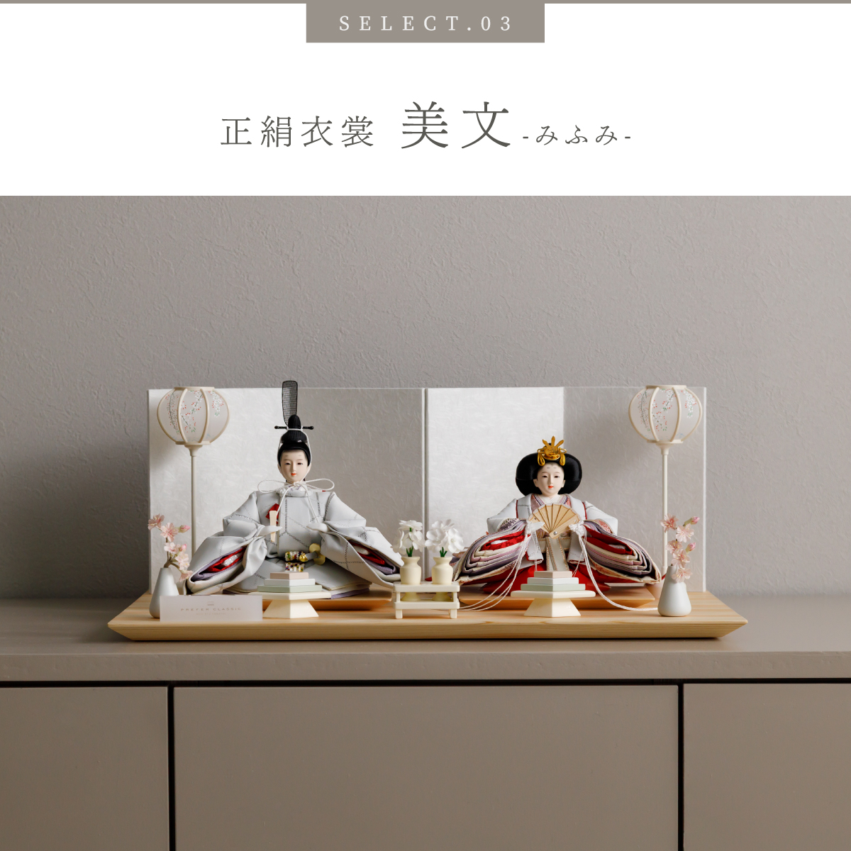 人形のお顔、飾り台、お道具まですべてにこだわり抜いて制作した、preferプロデュースの雛人形。熟練の職人たちがその技術を惜しみなく注いだ、本格派かつ高級志向のハイグレードなおひな様です。流行に左右されないシンプルモダンなスタイルのひな飾りは、時代を超えてどんな日の雛祭りにも華を添えます。衣裳着雛人形の美しい着姿を楽しめる親王飾り。かわいいお顔のお殿様とお姫様が優しく微笑みます。省スペースで楽しめる超コンパクトサイズ。存在感を放ちつつインテリアのようにお部屋に溶け込みます。高級感あふれる正絹生地のお衣裳は、おめでたい日の雰囲気をいっそう盛り上げてくれるでしょう。飾り台には肌目の美しい檜(ヒノキ)の台座を使用。趣深い白の四曲屏風と共に、ひな人形のお衣裳を引き立てます。組立て不要な平飾りタイプは設置もお手軽。繊細で美しいお道具もセットになり、華やかかつ豪華な雛飾りに仕上げました。可愛い雪洞はコードレスタイプです。初節句のお祝いやギフトにおすすめの、最高級の逸品です。
