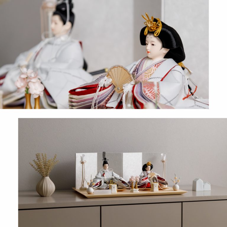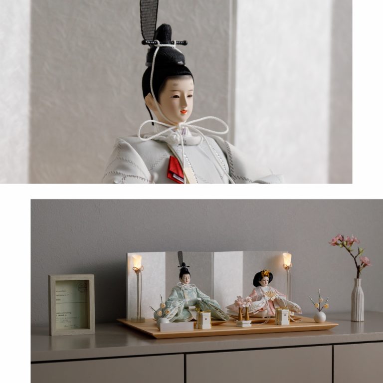 人形のお顔、飾り台、お道具まですべてにこだわり抜いて制作した、preferプロデュースの雛人形。熟練の職人たちがその技術を惜しみなく注いだ、本格派かつ高級志向のハイグレードなおひな様です。流行に左右されないシンプルモダンなスタイルのひな飾りは、時代を超えてどんな日の雛祭りにも華を添えます。衣裳着雛人形の美しい着姿を楽しめる親王飾り。かわいいお顔のお殿様とお姫様が優しく微笑みます。省スペースで楽しめる超コンパクトサイズ。存在感を放ちつつインテリアのようにお部屋に溶け込みます。高級感あふれる正絹生地のお衣裳は、おめでたい日の雰囲気をいっそう盛り上げてくれるでしょう。飾り台には肌目の美しい檜(ヒノキ)の台座を使用。趣深い白の四曲屏風と共に、ひな人形のお衣裳を引き立てます。組立て不要な平飾りタイプは設置もお手軽。繊細で美しいお道具もセットになり、華やかかつ豪華な雛飾りに仕上げました。雛人形を照らす可愛い油灯はコードレス式。女の子の初節句のお祝いやギフトにおすすめのおひな様です。
