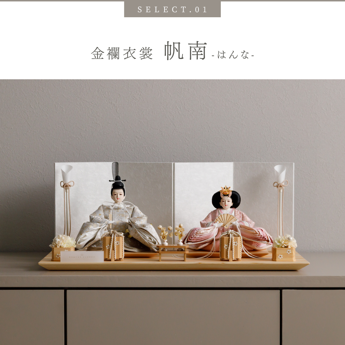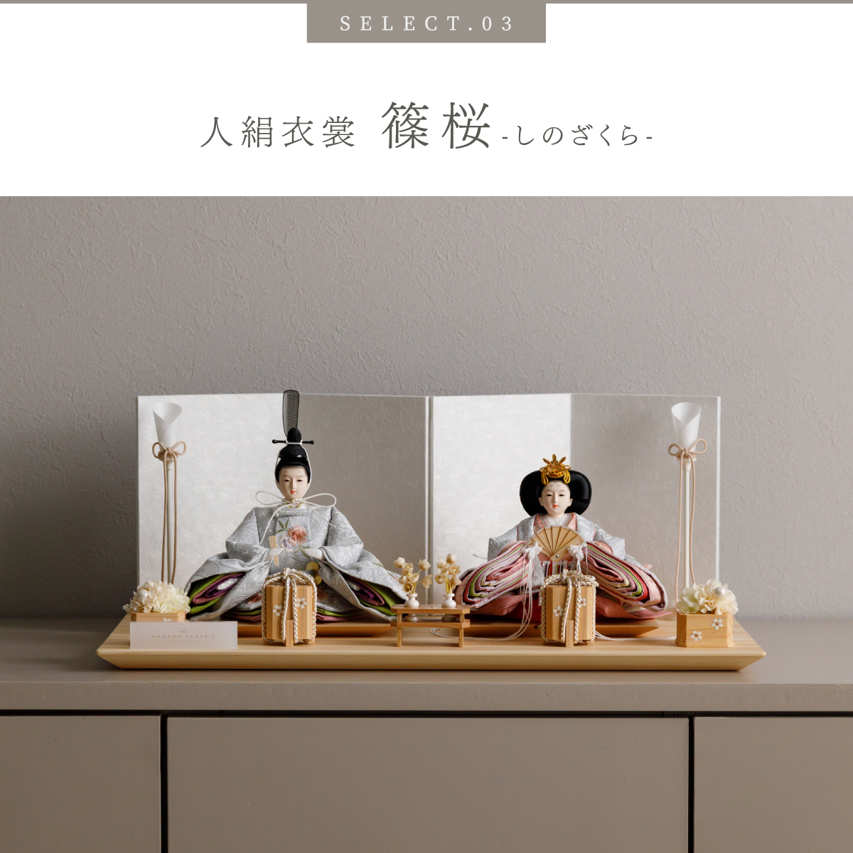 PREFER CLASSIC ひな人形 [檜台 白屏風 お道具付 貝桶花 油灯 人形極小サイズ 選べる衣裳3種類 帆南 白詩 篠桜]