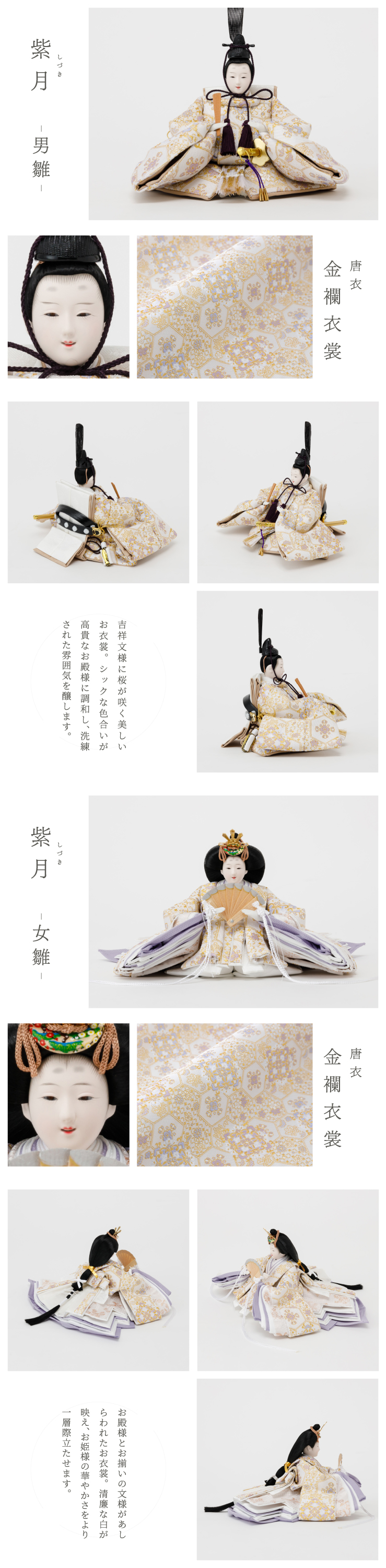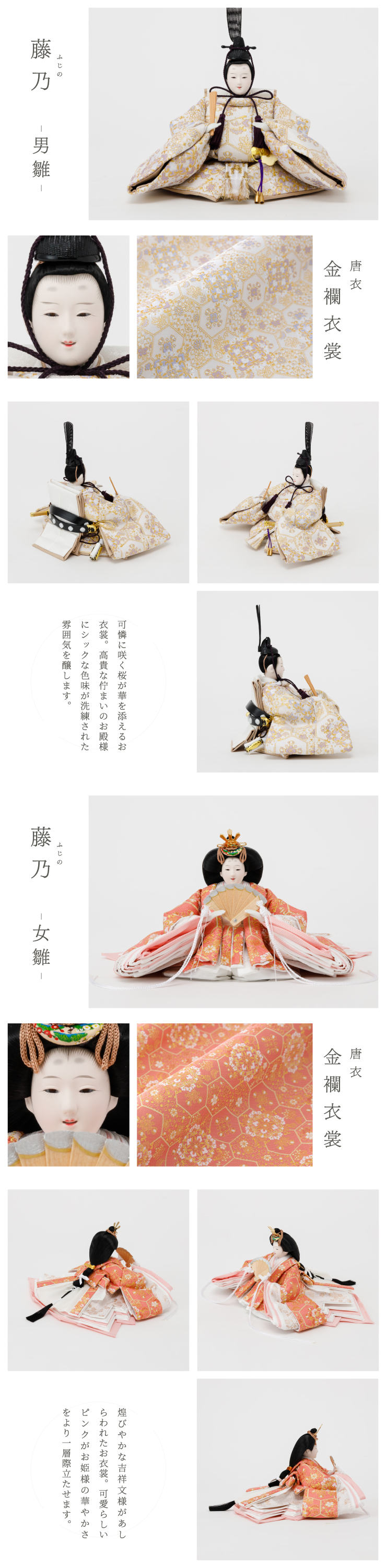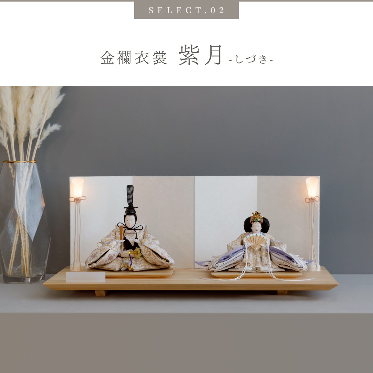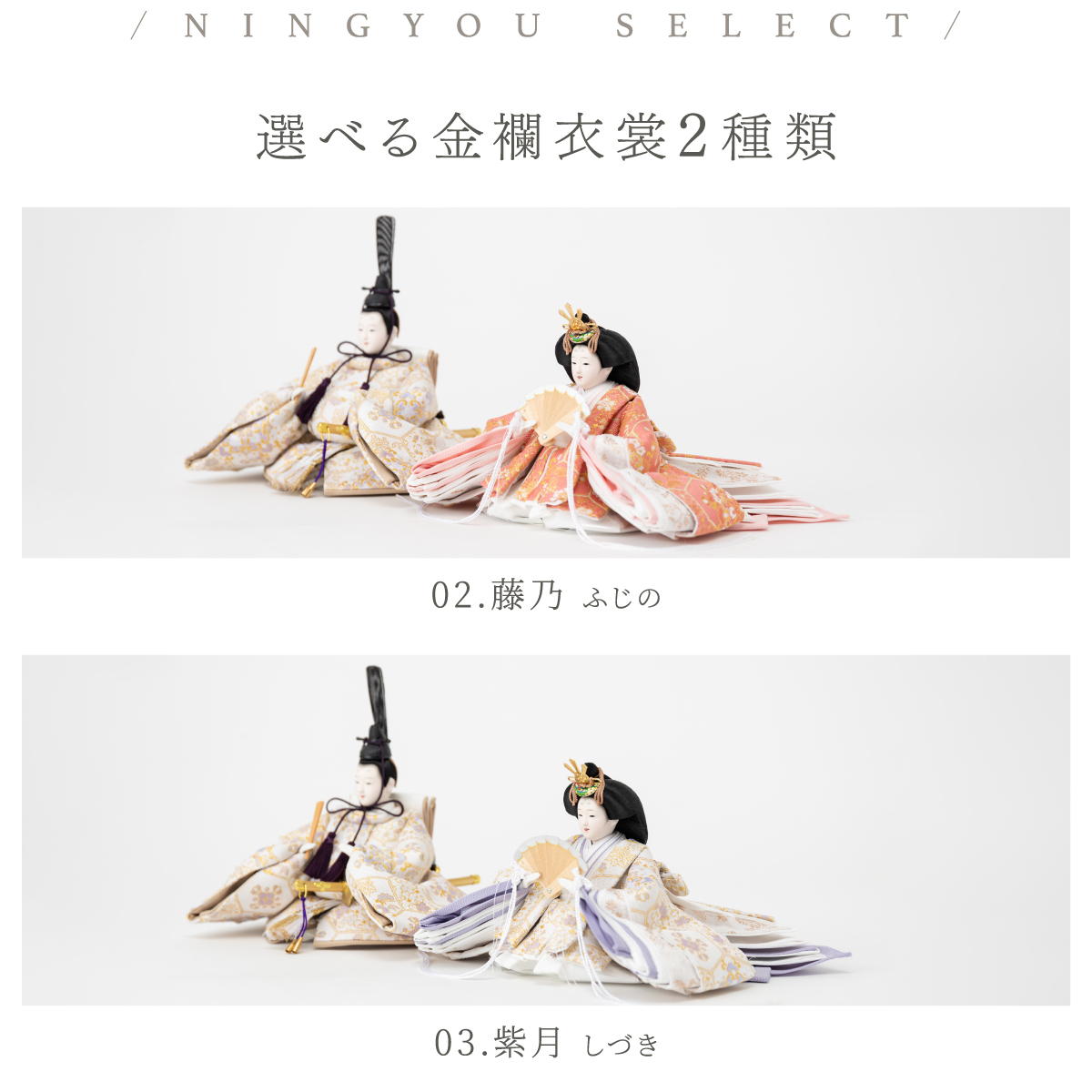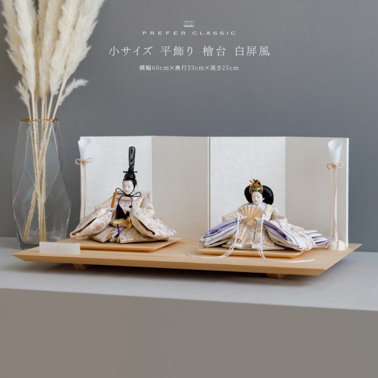 PREFER CLASSIC ひな人形 [檜台 白屏風 平飾り 油灯 人形小サイズ 選べる金襴衣裳2種類 藤乃 紫月]
