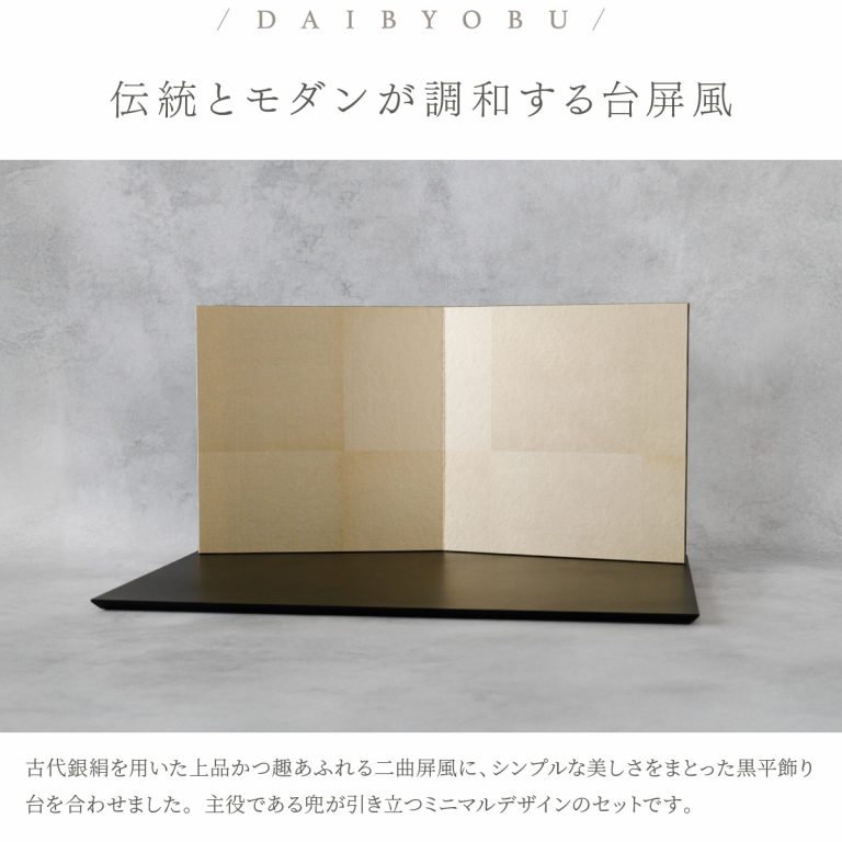 PREFER CLASSIC 五月人形[黒塗台 古代銀絹茶屏風 平飾り 弓太刀 KIYO 丹希]