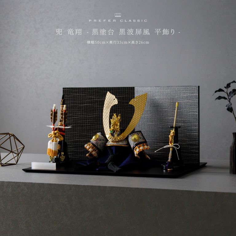 PREFER CLASSIC 五月人形[黒塗台 黒波屏風 平飾り 弓太刀 KEI 竜翔]