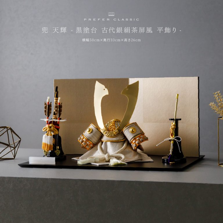 PREFER CLASSIC 五月人形[黒塗台 古代銀絹茶屏風 平飾り 弓太刀 KEI 天輝]