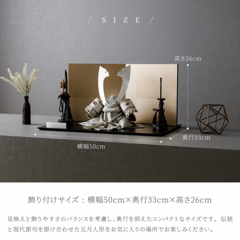 PREFER CLASSIC 五月人形[黒塗台 古代銀絹茶屏風 平飾り 弓太刀 KIYO 律輝]