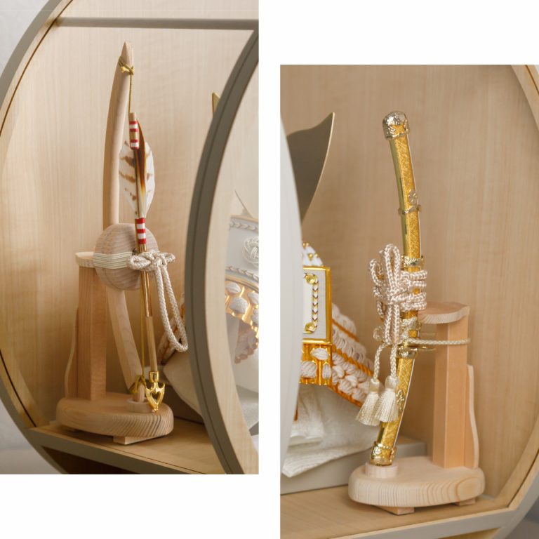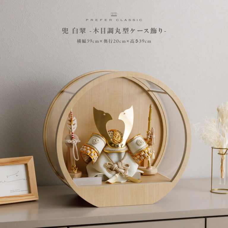 PREFER CLASSIC 五月人形[木目調丸型ケース 弓太刀 白珠8号 白翠]