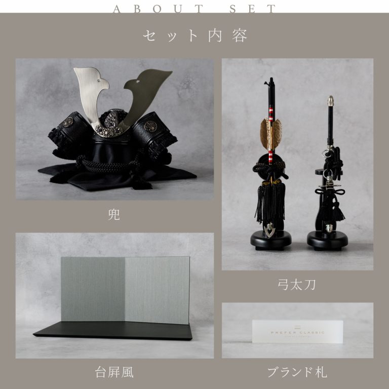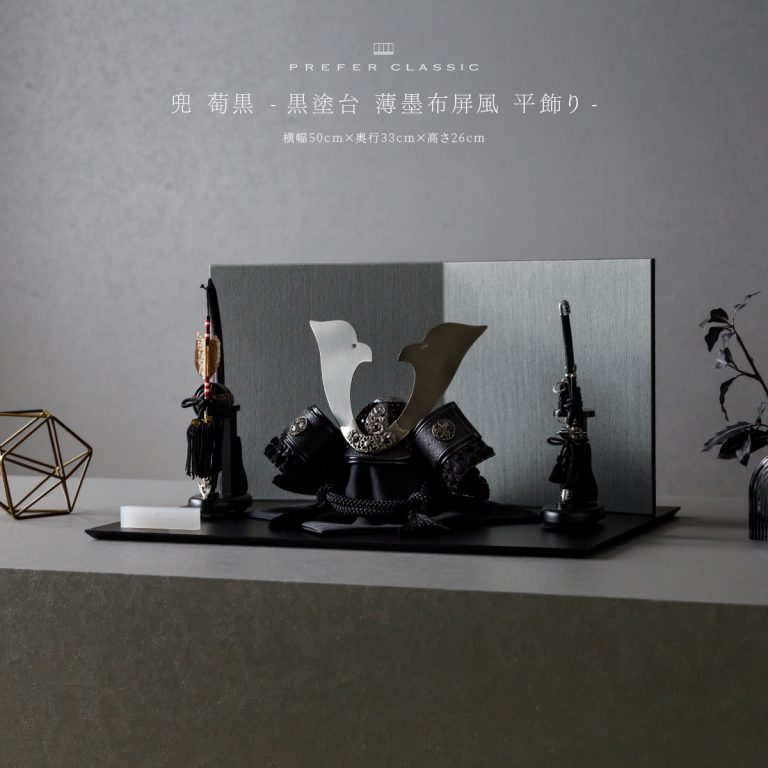 PREFER CLASSIC 五月人形[黒塗台 薄墨屏風 平飾り 弓太刀 黒龍8号 萄黒]