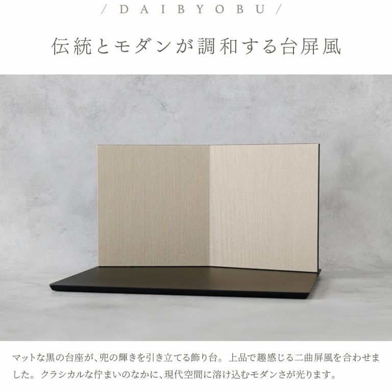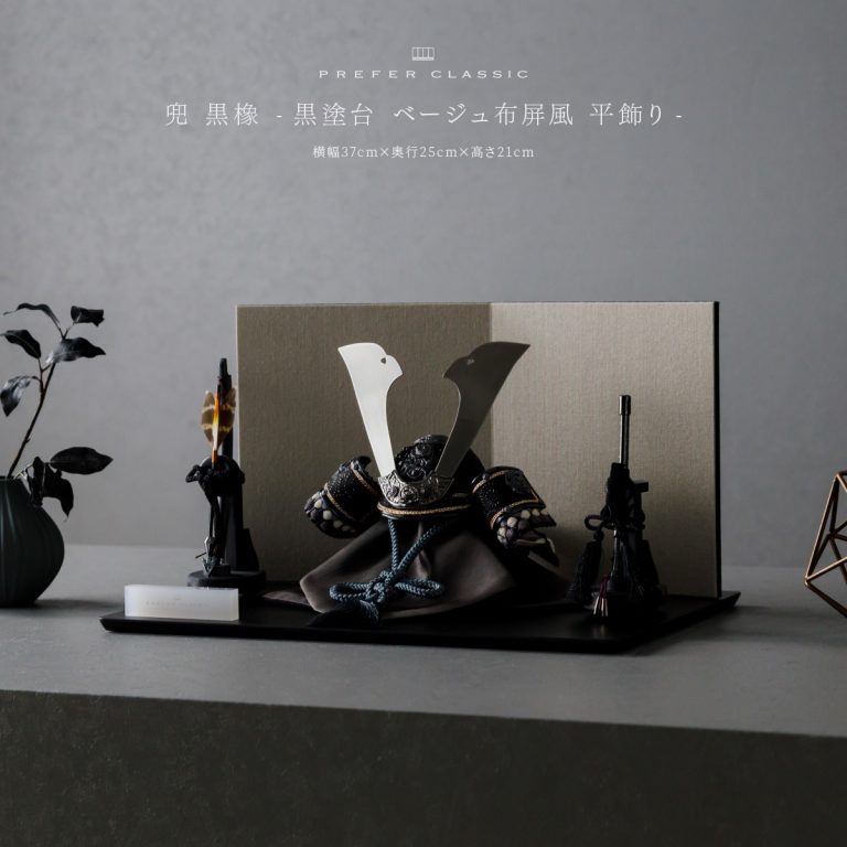 PREFER CLASSIC 五月人形[黒塗台 ベージュ布屏風 平飾り 弓太刀 KIYO5号 黒橡]