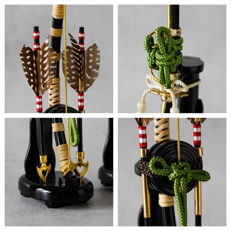 TOP > 五月人形 > ブランド > PREFER CLASSIC > PREFER CLASSIC 五月人形[黒塗台 古代銀絹茶屏風 平飾り 弓太刀 山代8号 金緑]