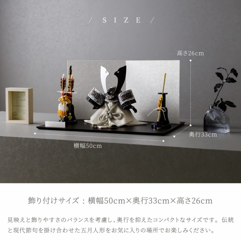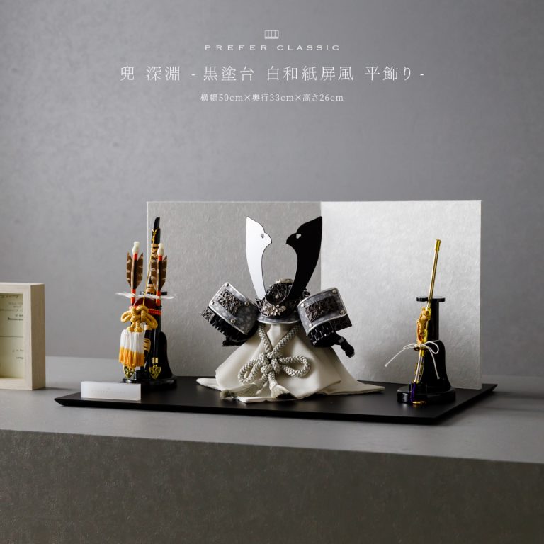 PREFER CLASSIC 五月人形[黒塗台 白和紙屏風 平飾り 弓太刀 KEI 深淵]