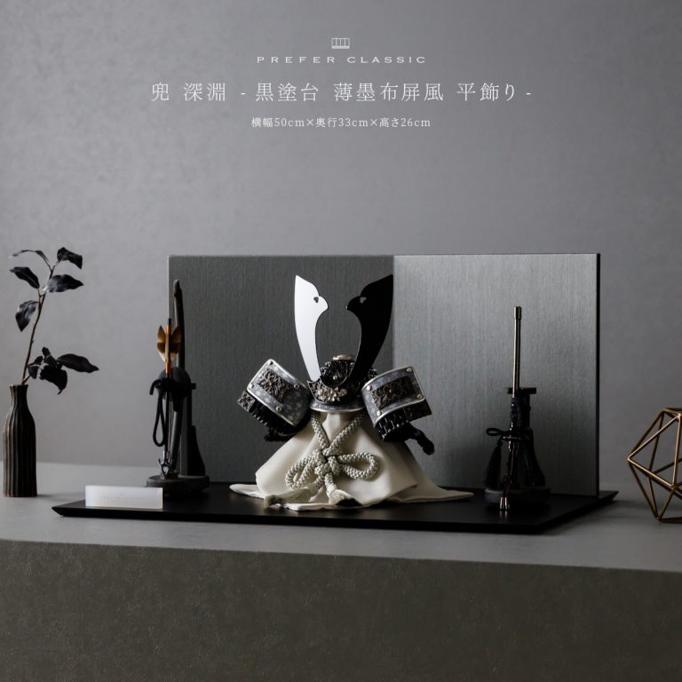 PREFER CLASSIC 五月人形[黒塗台 薄墨布屏風 平飾り 弓太刀 KIYO7号 深淵]