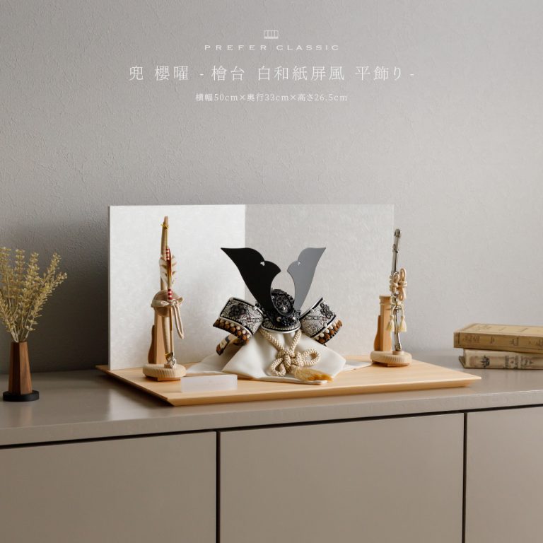 PREFER CLASSIC 五月人形[檜台 白和紙屏風 平飾り 弓太刀 白珠5号 櫻曜]