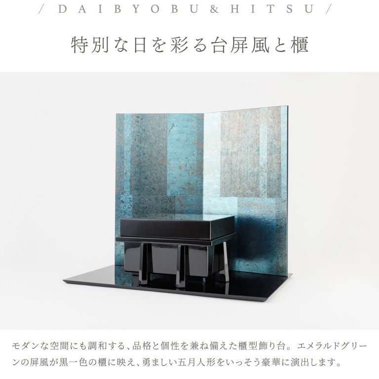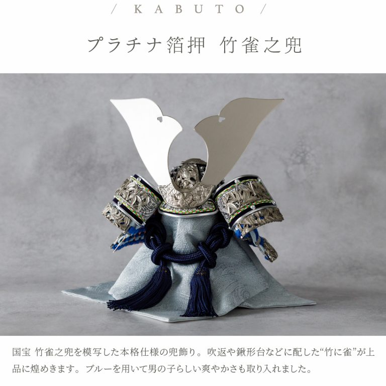 PREFER CLASSIC 五月人形[黒塗台 緑玉屏風 櫃付 平飾り弓太刀 保津10号 プラチナ箔押 竹雀之兜]