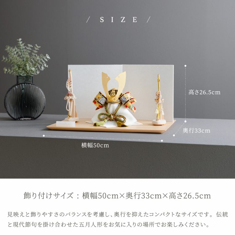 PREFER CLASSIC 五月人形[檜台 白和紙屏風 平飾り 弓太刀 白珠8号 金緑]