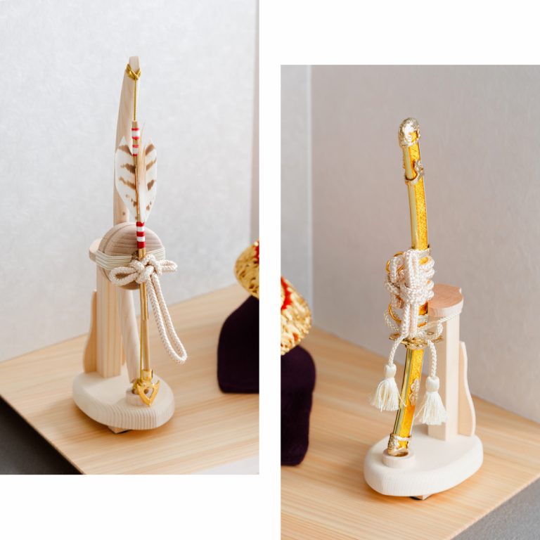 PREFER CLASSIC 五月人形[檜台 白和紙屏風 平飾り 弓太刀 白珠8号 純金箔押 竹雀之兜]