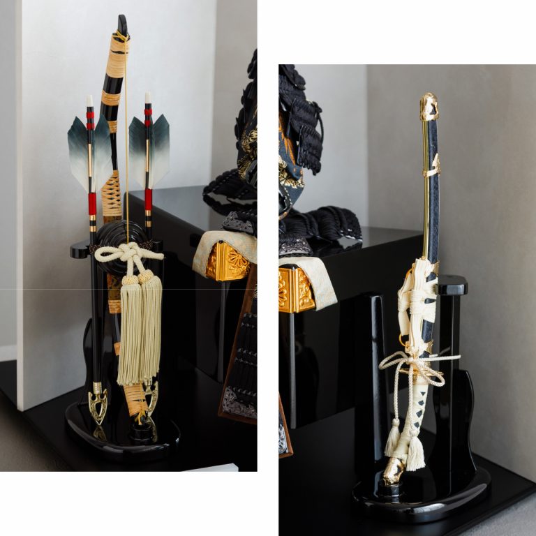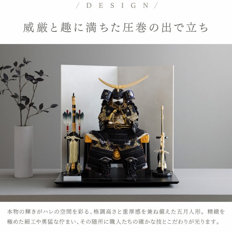 PREFER CLASSIC 五月人形[黒塗台 白屏風 平飾り 弓太刀 RIKI 5号鎧 伊達黒]