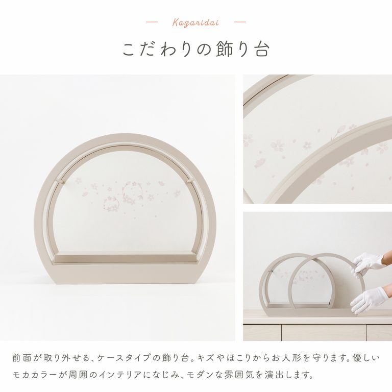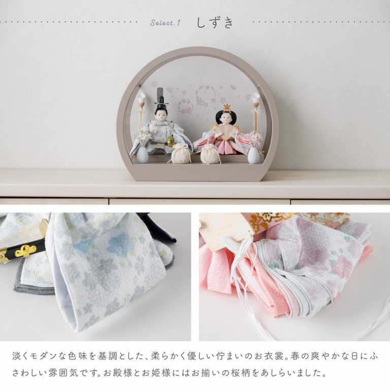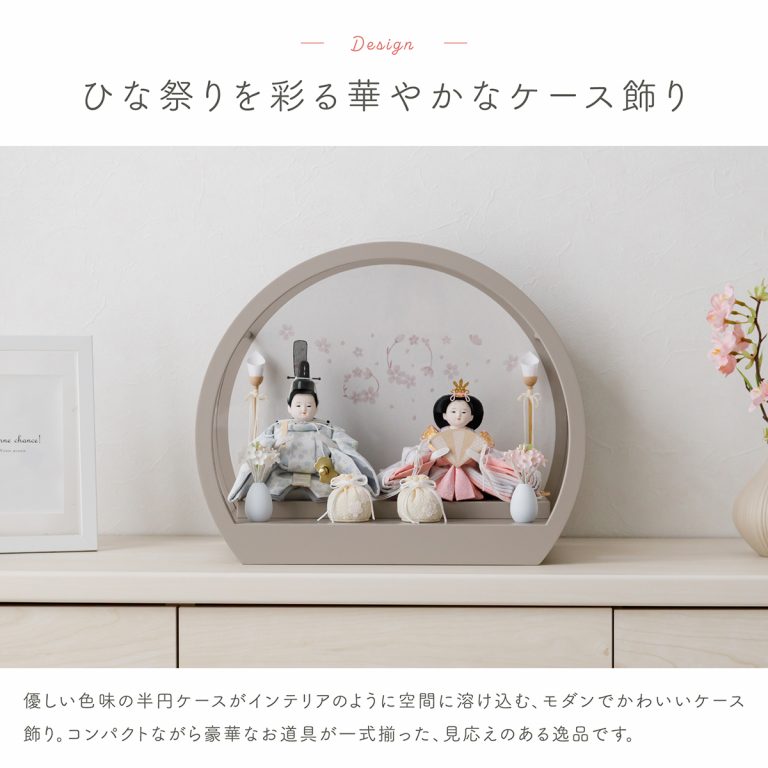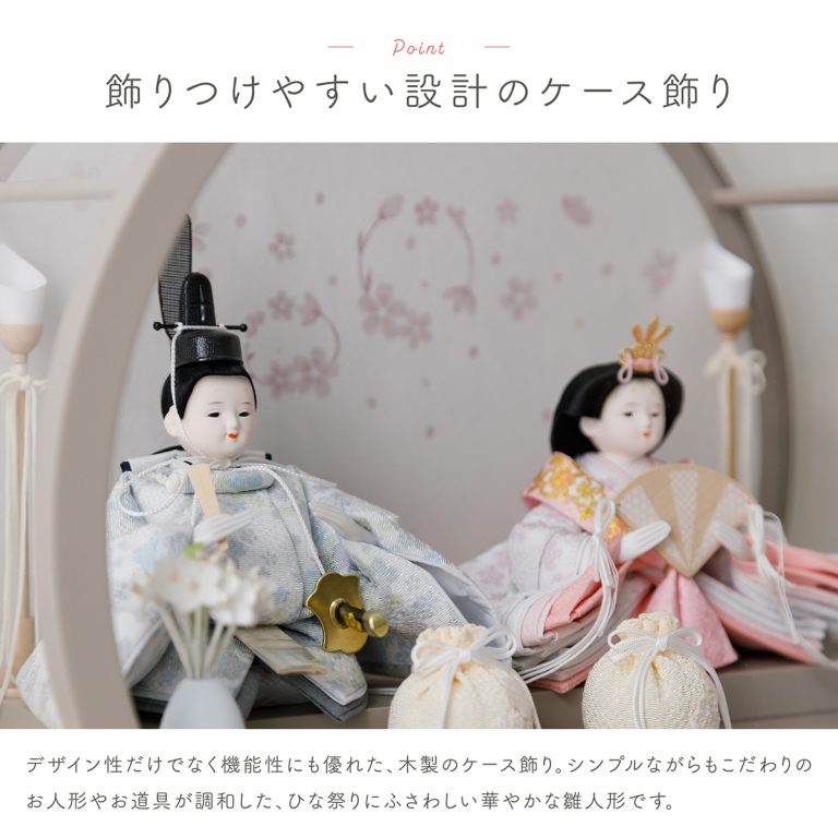 コンパクトなケース飾りで人気のお雛様「SakuraLiru」。華やかさと飾りやすさ両方を実現した、ふるうるのかわいいひな人形です。ケース飾りのおひな様はお手入れも簡単。小さいサイズなのでインテリアのようにおしゃれに楽しめます。初節句やお祝いギフトにもぴったりの、モダンで可愛い逸品です。