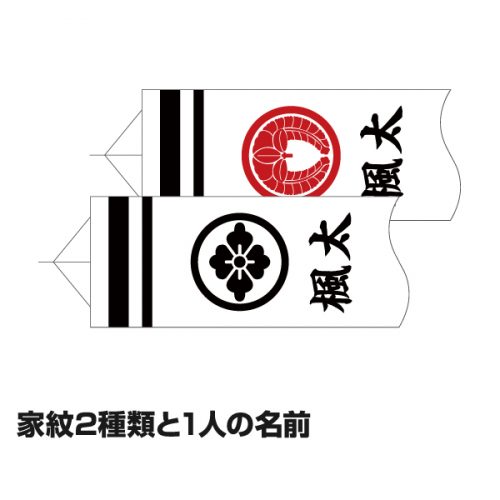 家紋色は、ご購入いただいた鯉のぼりの吹流しの基本色でお入れいたします。 基本色につきましては、各鯉のぼりの商品ページにてご確認ください。