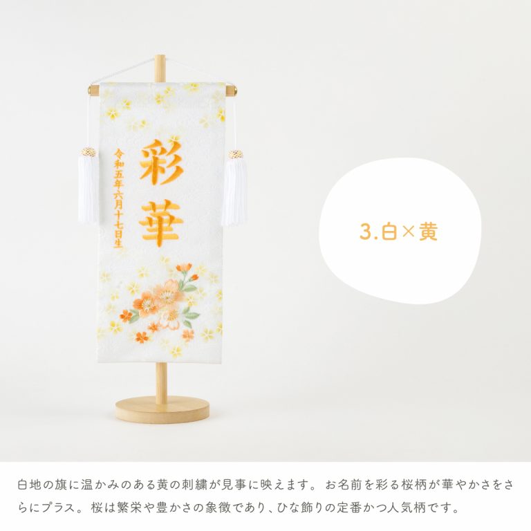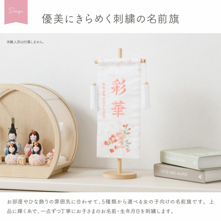 ※本商品は織物(布生地)にお名前を刺繍する商品です。刺繍加工商品は、お入れする文字の形状や、生地の状況などにより縮みやずれなどが生じる事が予想されます。刺繍入れされた名前旗は、全て検品をした上で良品として認められた商品をお送りしていますので、文字のバランス指定などを理由とした交換は一切お受け出来ません。すべてのお客様にお願いしている事になりますので、予めご了承いただきますようお願い申し上げます。※お品に使われている素材等は予告なく変更する場合がございます。