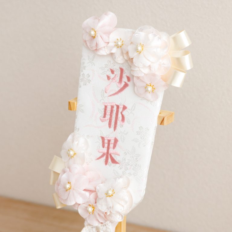 ※本商品は織物(布生地)にお名前を刺繍する商品です。刺繍加工商品は、お入れする文字の形状や、生地の状況などにより縮みやずれなどが生じる事が予想されます。刺繍入れされた名前旗は、全て検品をした上で良品として認められた商品をお送りしていますので、文字のバランス指定などを理由とした交換は一切お受け出来ません。すべてのお客様にお願いしている事になりますので、予めご了承いただきますようお願い申し上げます。※お品に使われている素材等は予告なく変更する場合がございます。