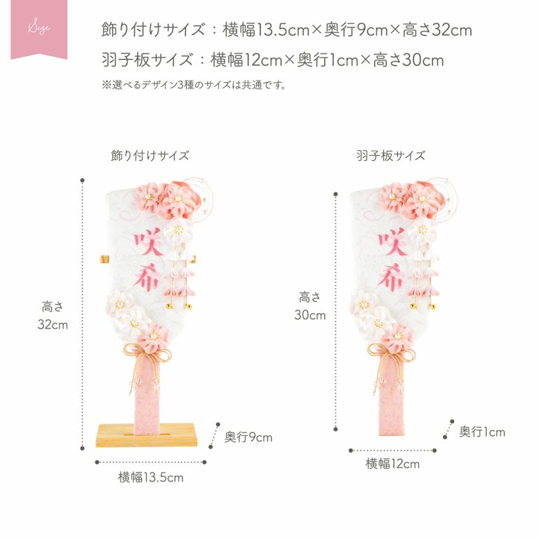 ・横幅13.5cm×奥行9cm×高さ32cm・羽子板のみ約12cm×1cm×約30cm(リボン含まず)