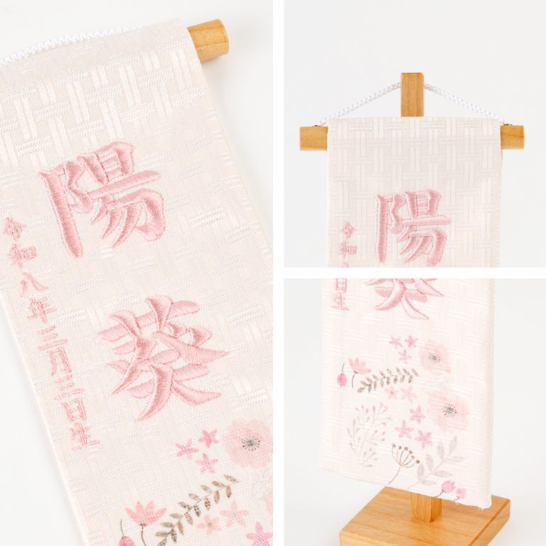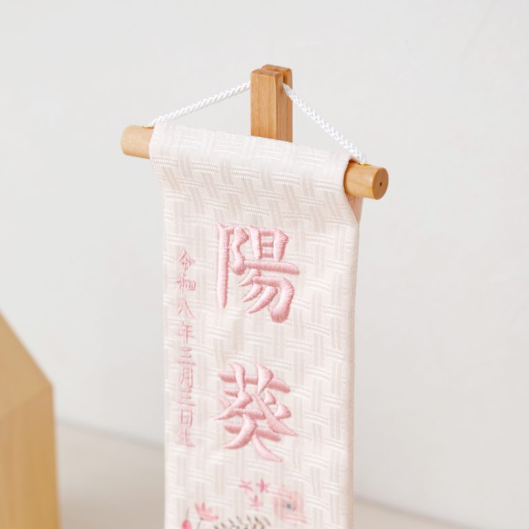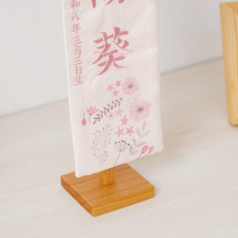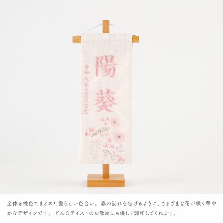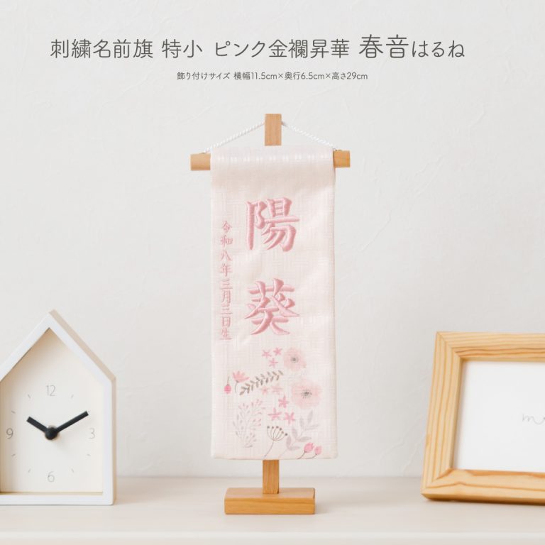 刺繍名前旗 特小 ピンク金襴昇華 春音 はるね