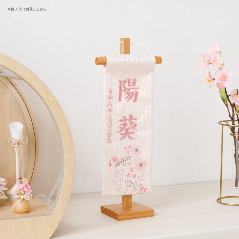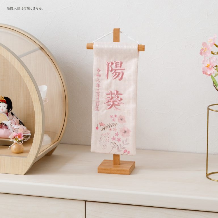 TOP > 雛人形 > 単品/小物 > 名前旗・木札 > 刺繍名前旗 特小 ピンク金襴昇華 春音 はるね