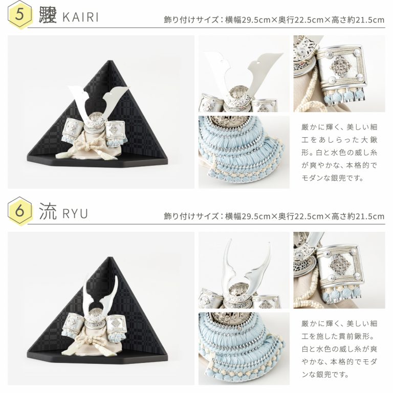 繊細な作りと華やかさを兼ね備えた重厚感のあるコンパクトな兜飾り。大切なお子様の健やかな成長を願う五月人形にぴったりの節句飾りです。ダイヤ形の飾り台には、和紙を使用して仕立てたモダンな屏風を合わせました。よいやみ・ゆきぼし・うすぐもの3種類からお選びいただけます。兜と調和するシンプルで気品溢れるデザイン。初節句・端午の節句のお祝いやインテリアとしてもおすすめです。