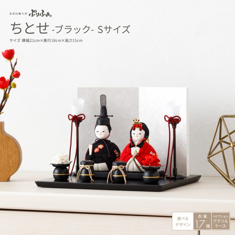 木目込み雛人形ぷりふあ 親王飾り ちとせ -ブラック- Sサイズ
