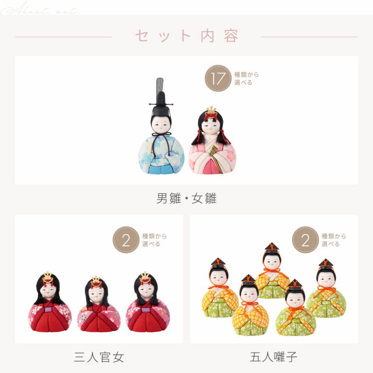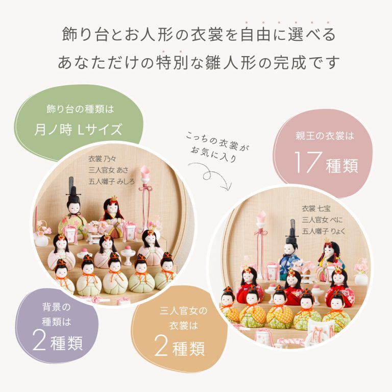 木目込み雛人形ぷりふあ 十人飾り 月ノ時 -ナチュラル- Lサイズ ケース仕様