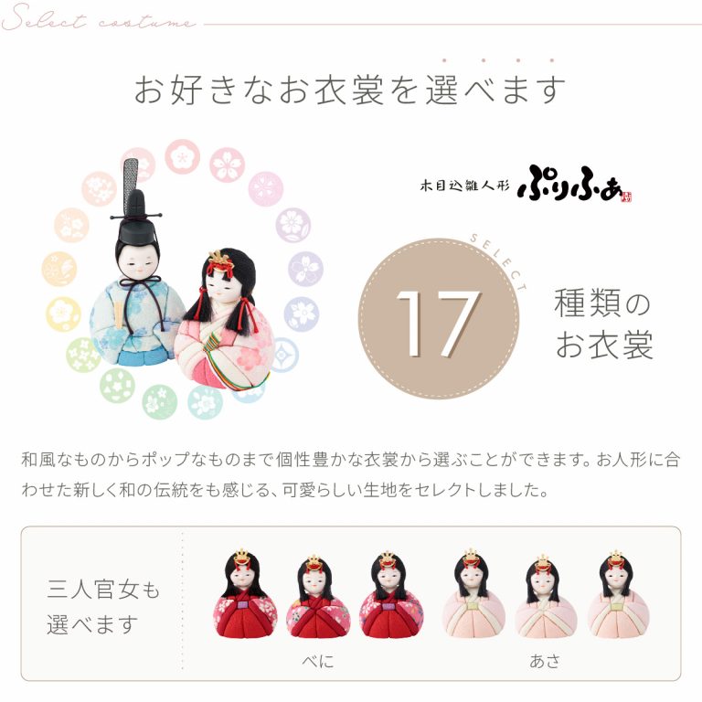 木目込み雛人形ぷりふあ 五人飾り 月ノ時 -ナチュラル- Sサイズ ケース仕様