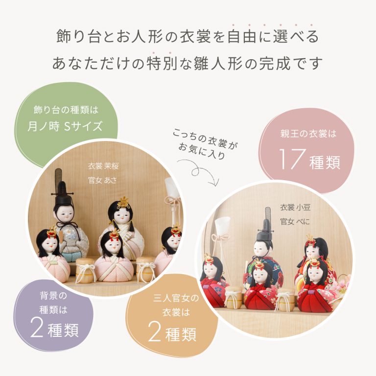 ※お人形のお顔について、左右非対称・目の形の歪み・顔の塗装の凹凸などが見受けられますが、1つ1つ職人が手作業で制作しているため、予めご了承ください。