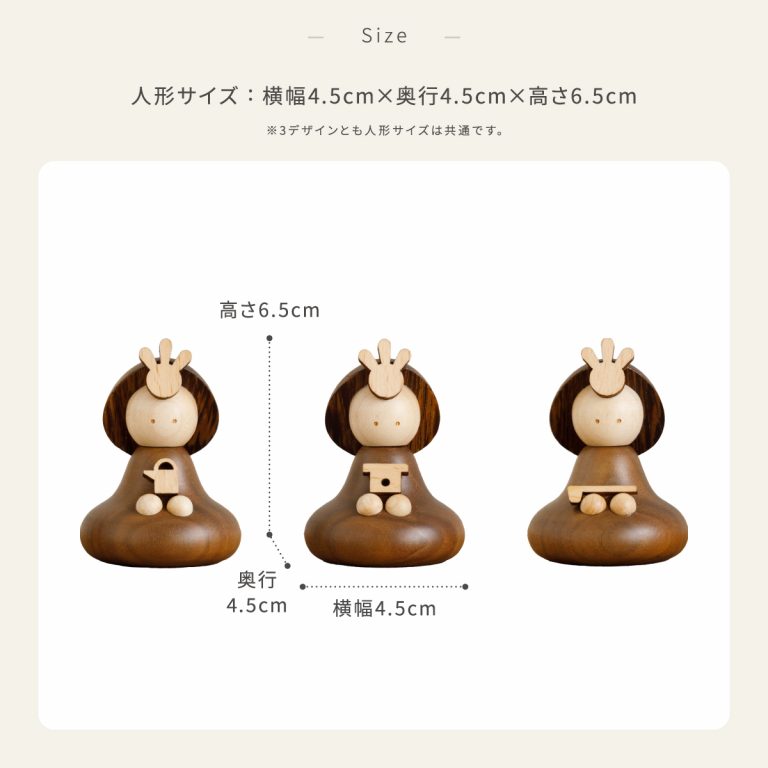 ・横幅4.5cm×奥行4.5cm×高さ6.5cm※一体のサイズです。三体とも同じサイズとなります。