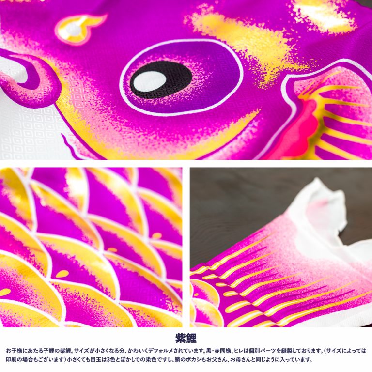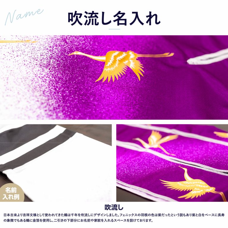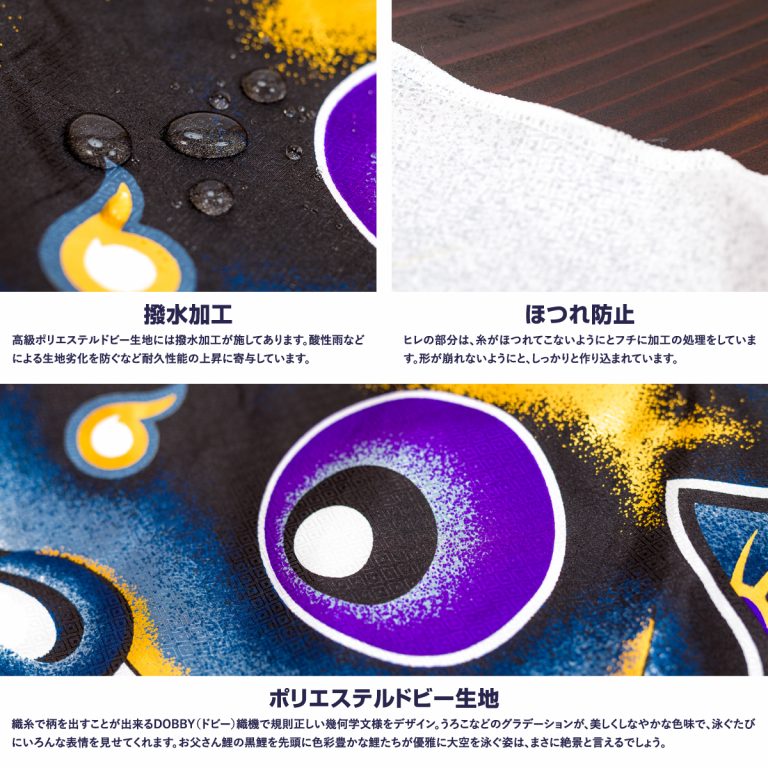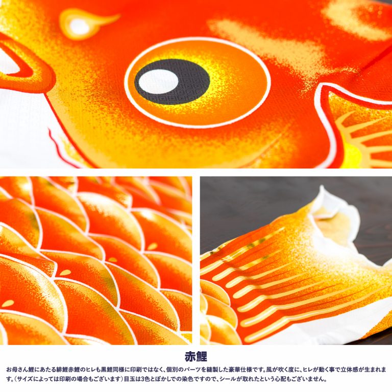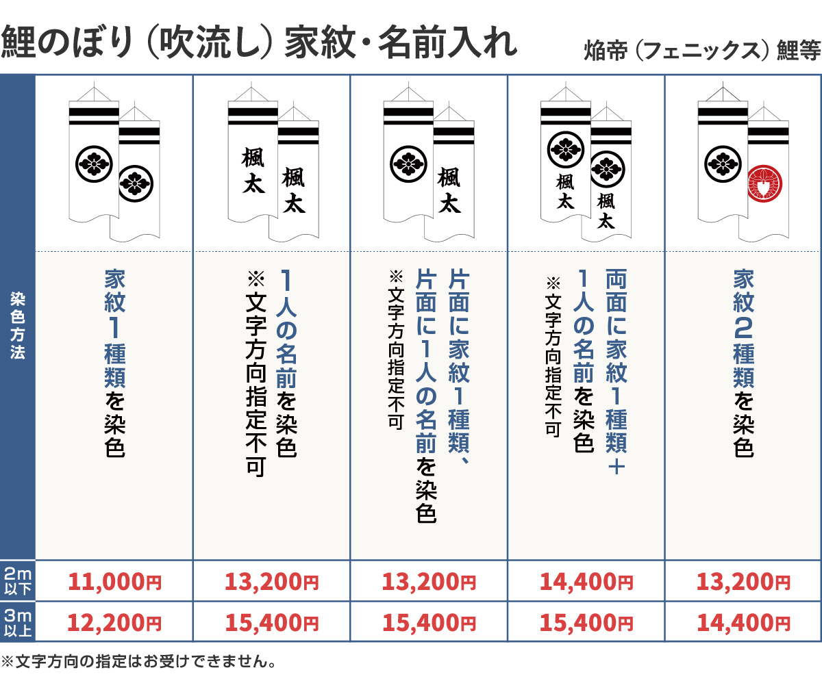 文字色は、ご購入いただいた鯉のぼりの吹流しの基本色でお入れいたします。 基本色につきましては、各鯉のぼりの商品ページにてご確認ください。