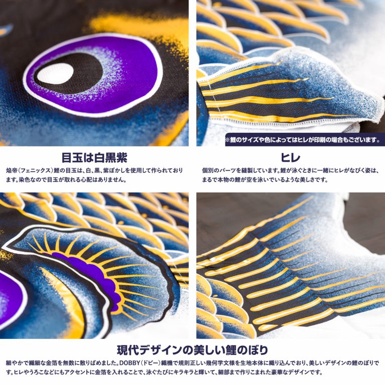 鯉のぼり ベランダ 庭 こいのぼり おしゃれ 焔帝鯉 フェニックス 撥水加工 1.2m 1.5m 2m 3m 4m 5m 6m 鯉 3匹 4匹 5匹 スタンダード プレミアム スタンド 格子金具 万能万力 koiらく 杭打ちポール
