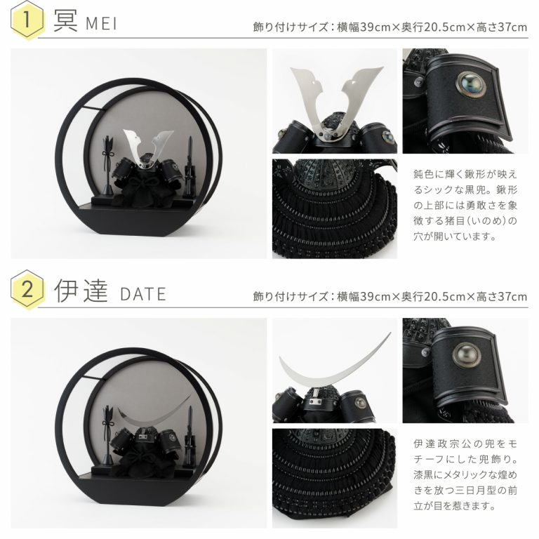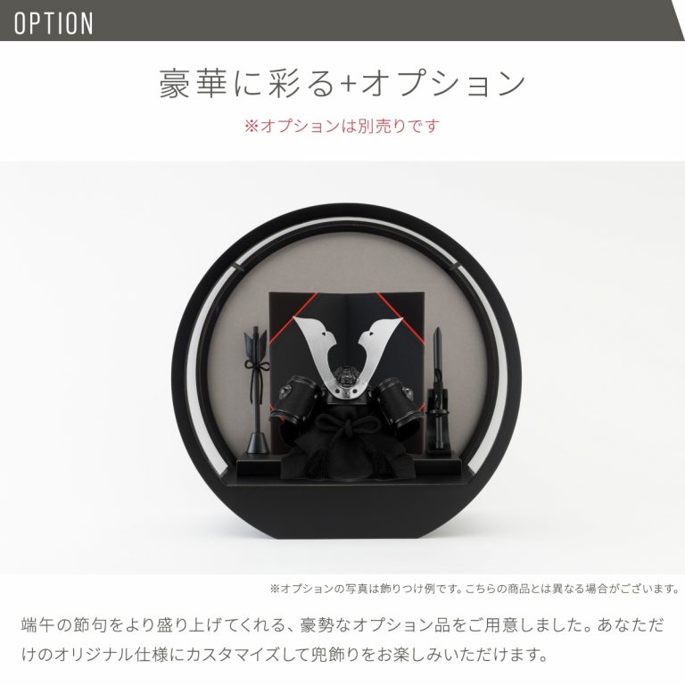 勇ましい風合いを醸し出す漆黒の兜飾りを人気のコンパクトサイズに仕上げました。端正な出立ちは、おめでたい節句飾りにもインテリアにもおすすめです。飾り台はお手入れ簡単なケースタイプ。マットに仕上げた黒が五月人形の輝きを引き立てます。優雅な曲線を描くフォルムは空間に調和し、クラシカル・モダン問わずあらゆるお部屋にはまります。脇飾りはお好みのものをお選びください。こどもの日や端午の節句にいっそう華を添え、省スペースで楽しめるおしゃれなケース飾り。かっこいいぷりふあの五月人形は、初節句のお祝いやギフトにもおすすめです。