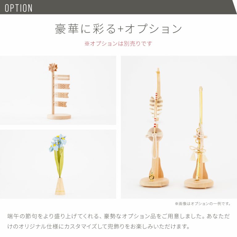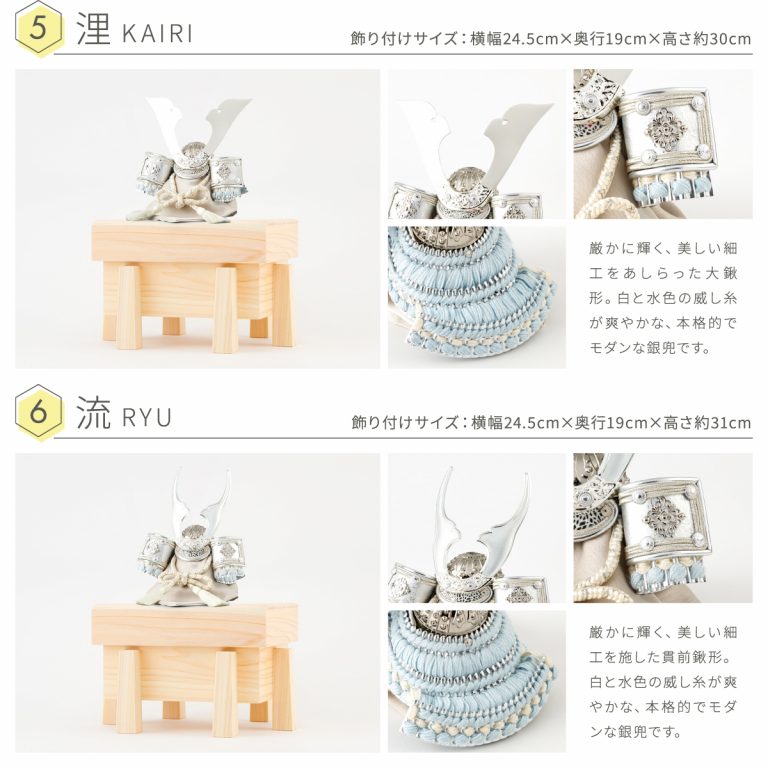 繊細な作りと華やかさを兼ね備えた重厚感のあるコンパクトな兜飾り。大切なお子様の健やかな成長を願う五月人形にぴったりの節句飾りです。白く美しい表情の檜(ひのき)を使用した収納タイプの飾り台は、主役である兜が引き立つよう、模様や柄を敢えて省きました。自然と馴染む檜の素材感がモダンな空間を演出し、端午の節句を盛り上げます。