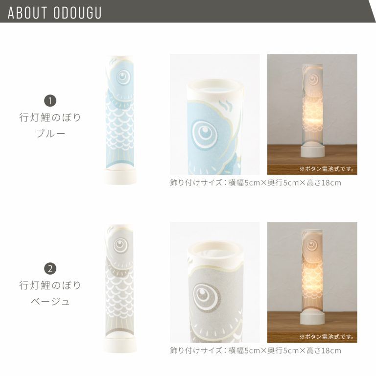 ・行灯鯉のぼり:横幅5.0cm×奥行5.0cm×高さ18.0cm