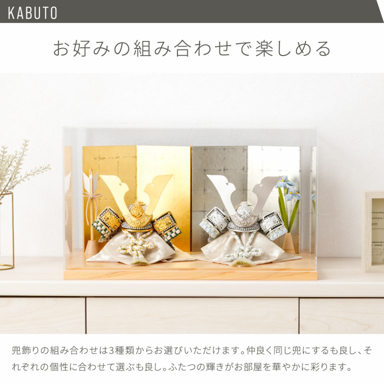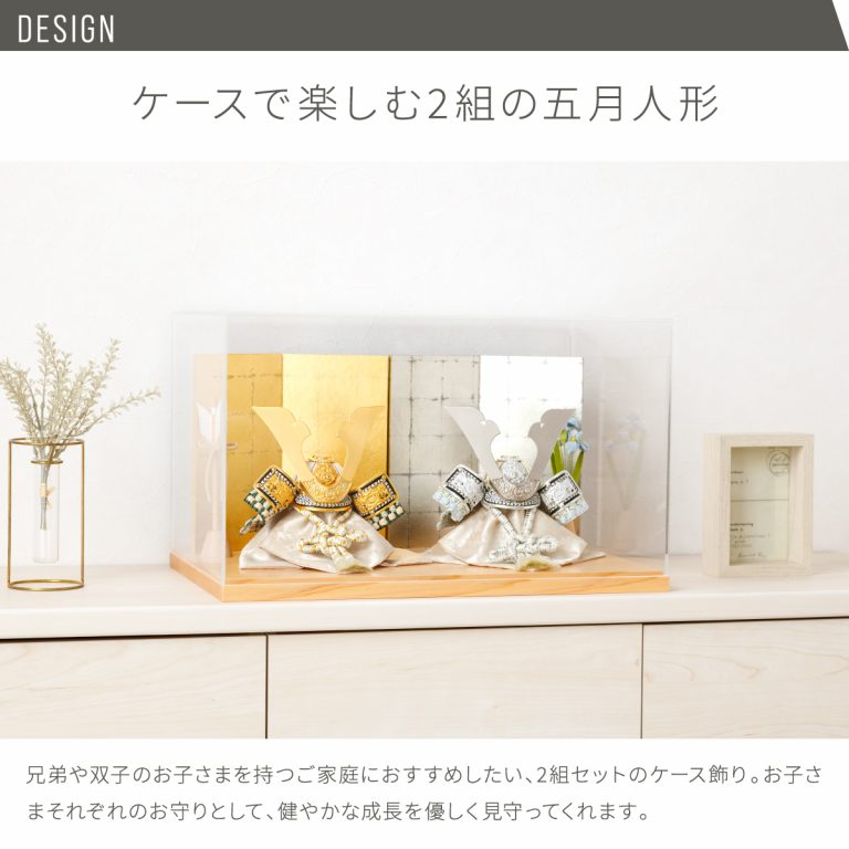 二人兄弟や双子にぴったりの、2組セットのぷりふあ五月人形。コンパクトなモダン兜が仲良く並び、こどもの日や端午の節句に華を添えます。シンプルでおしゃれなデザインはどんな空間にもマッチ。小さいサイズのケース飾りなのでインテリアを損ないません。初節句やお祝いギフトにもおすすめです。