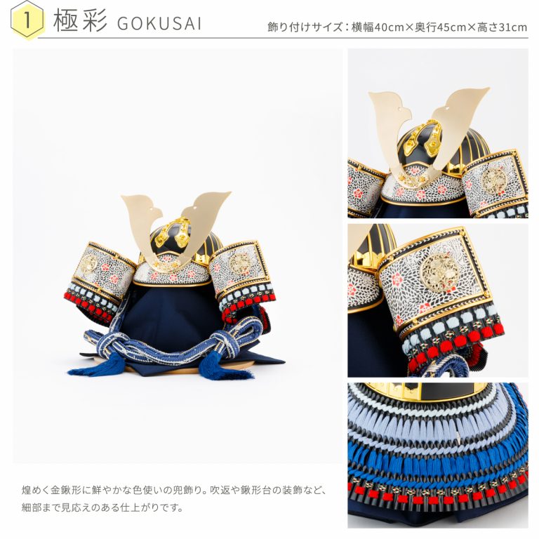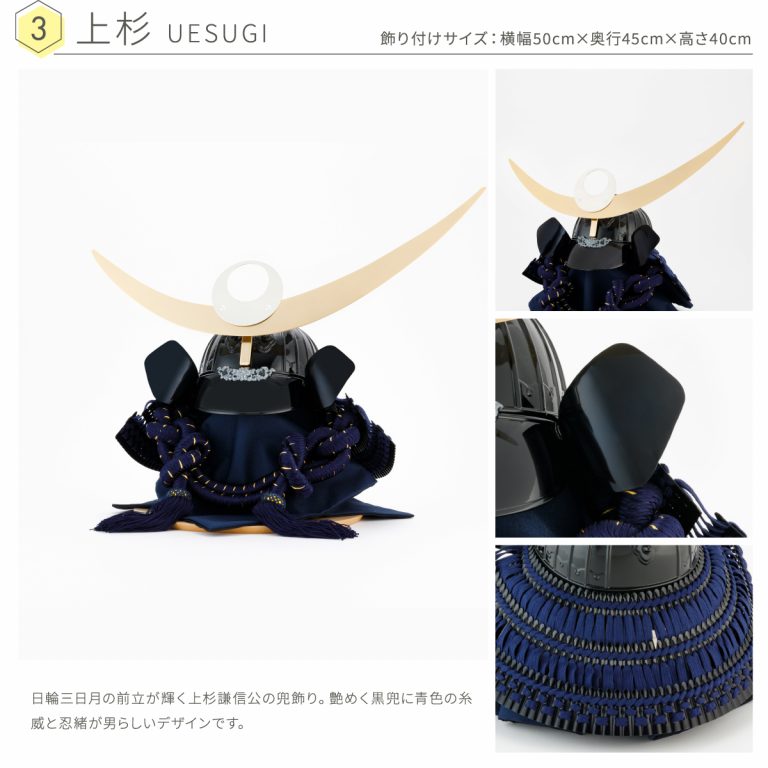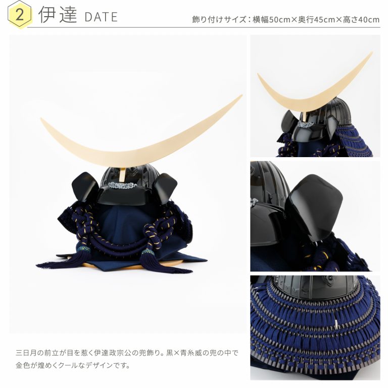 上杉謙信や伊達政宗など、名だたる武将になりきれる着用タイプの兜飾り。お部屋に飾って節句飾りやインテリアとして楽しんだり、実際にかぶって記念撮影したりするのもオススメ。端午の節句を豪華に彩る本格派の兜です。半月を連想させるロマンチックな飾り台は、バーチを使用した日本家具産業会認定の国産品。シンプルですっきりとしたフォルムなので5月人形を存分に楽しめます。