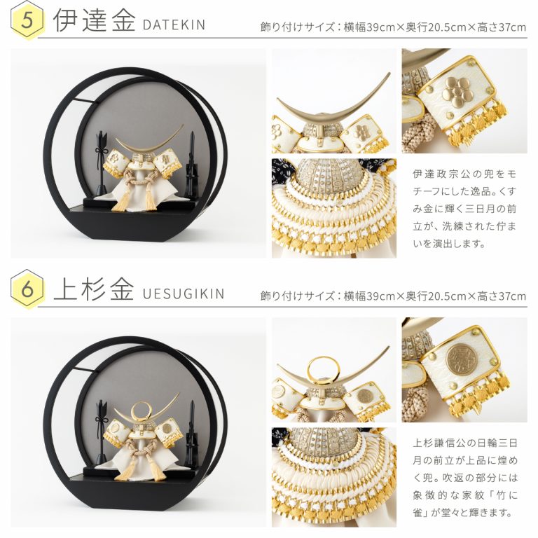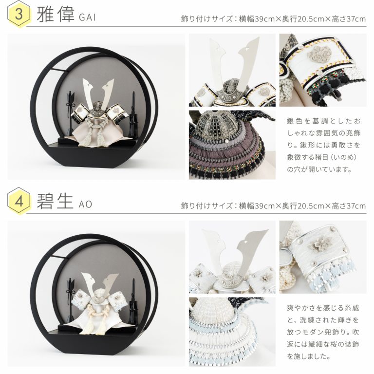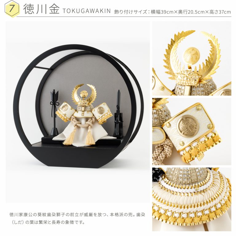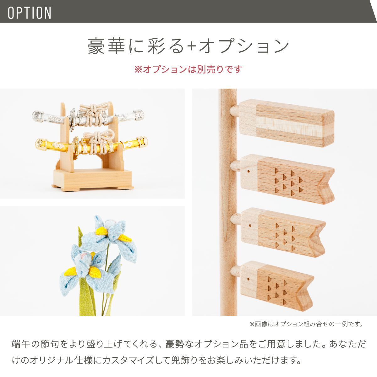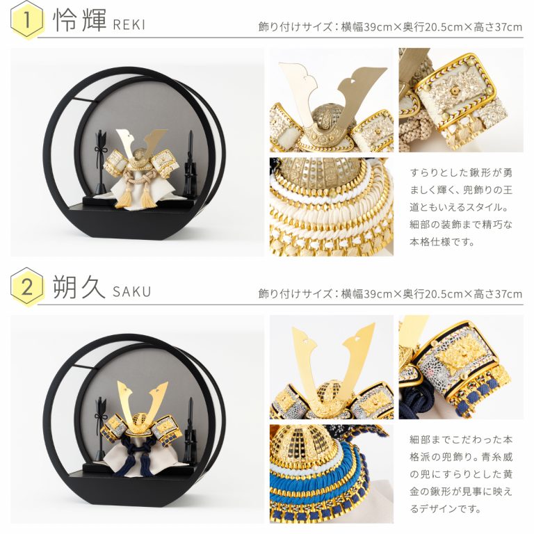 煌々とした輝きを放つコンパクトで美しいインテリア兜飾り。端午の節句にぴったりな金銀の輝きに、力強さと高貴さを感じる絢爛豪華な節句飾りです。飾り台はお手入れ簡単なケースタイプ。マットに仕上げた黒が五月人形の輝きを引き立てます。優雅な曲線を描くフォルムは、クラシカル・モダン問わずあらゆるお部屋に調和。脇飾りはお好みに合わせてお選びください。省スペースで楽しめるおしゃれなケース飾りが、端午の節句にいっそう華を添えてくれるでしょう。かっこいいぷりふあの五月人形は、初節句のお祝いやギフトにもおすすめです。
