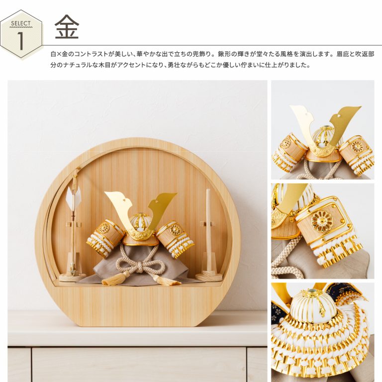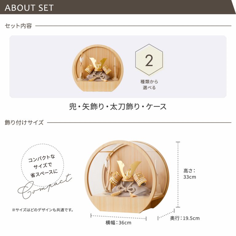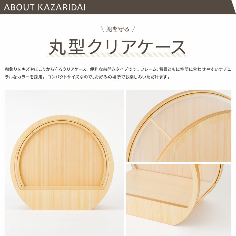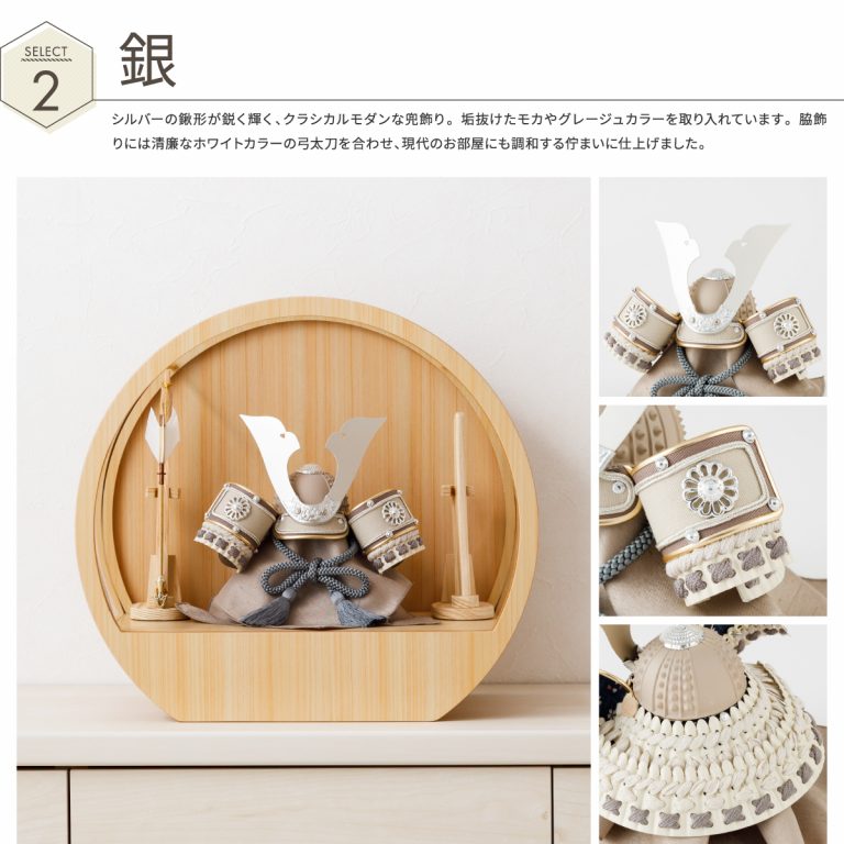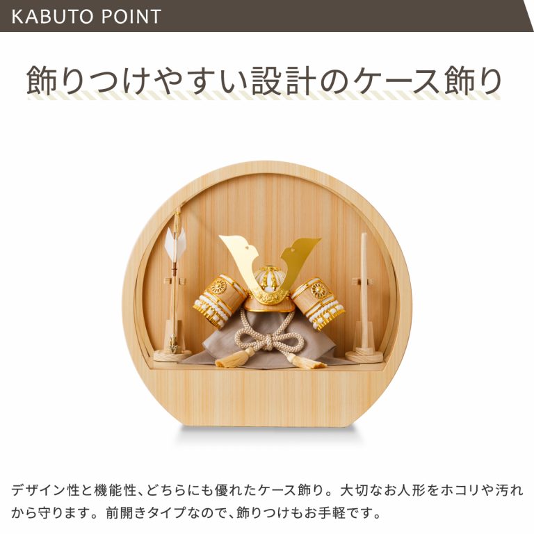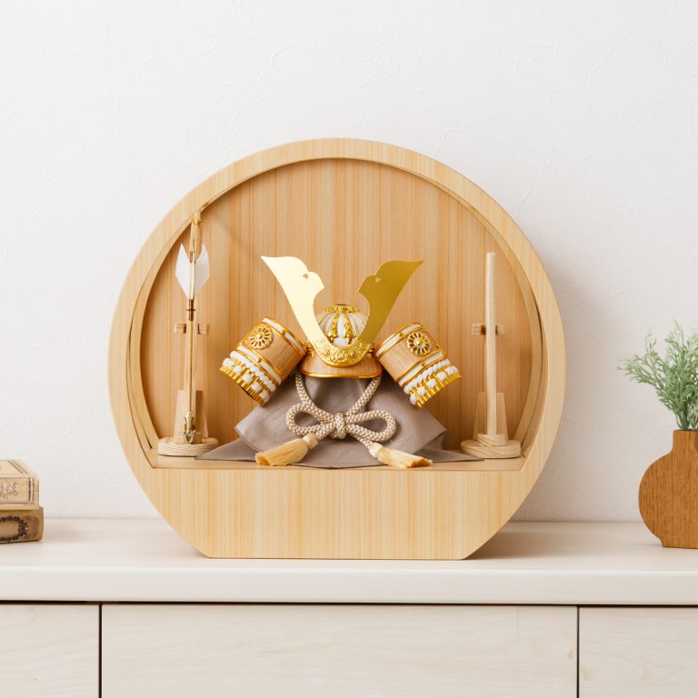 コンパクトで飾りやすい、ROITOKAのおしゃれな丸型ケース飾り。弓太刀の脇飾りも揃い、端午の節句やこどもの日など、男の子の特別な記念日に華を添える五月人形です。ケースタイプの兜飾りはお手入れ簡単。小さいサイズなので、モダンなインテリアのように楽しめます。初節句のお祝いギフトにもおすすめです。