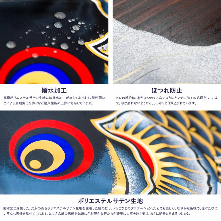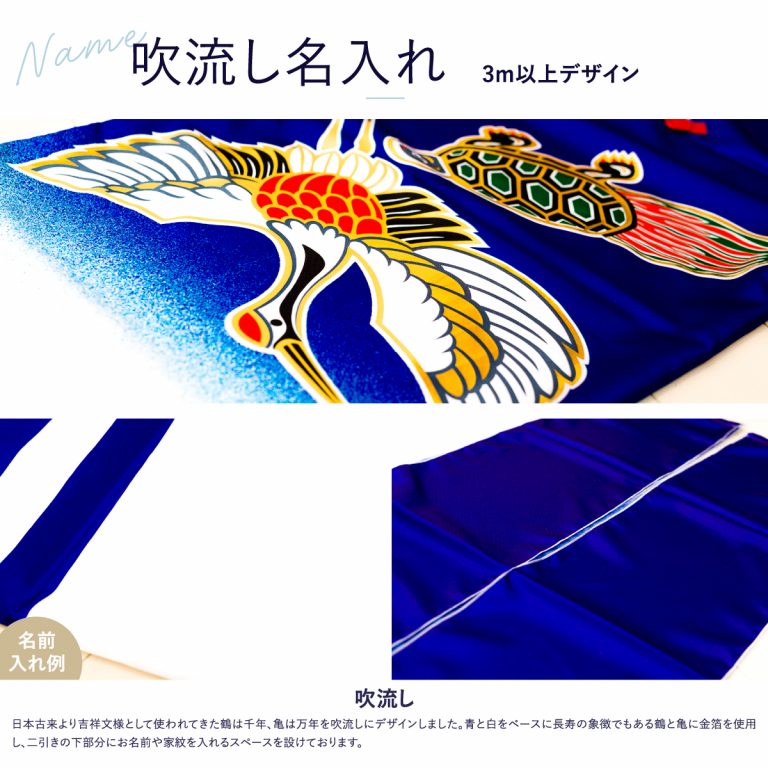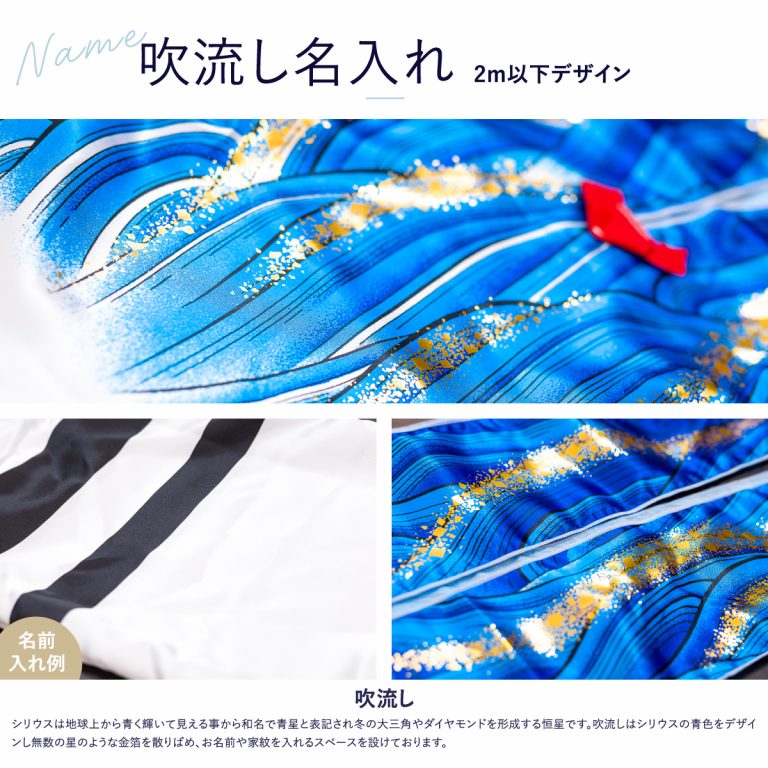 文字色は、ご購入いただいた鯉のぼりの吹流しの基本色でお入れいたします。 基本色につきましては、各鯉のぼりの商品ページにてご確認ください。