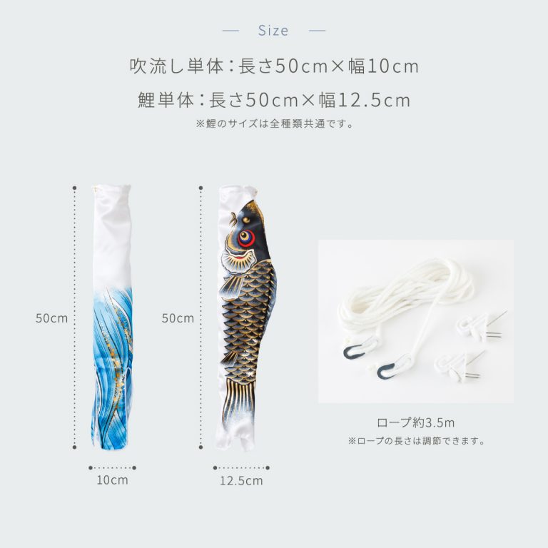 ・吹流し単体:横50cm×縦10cm