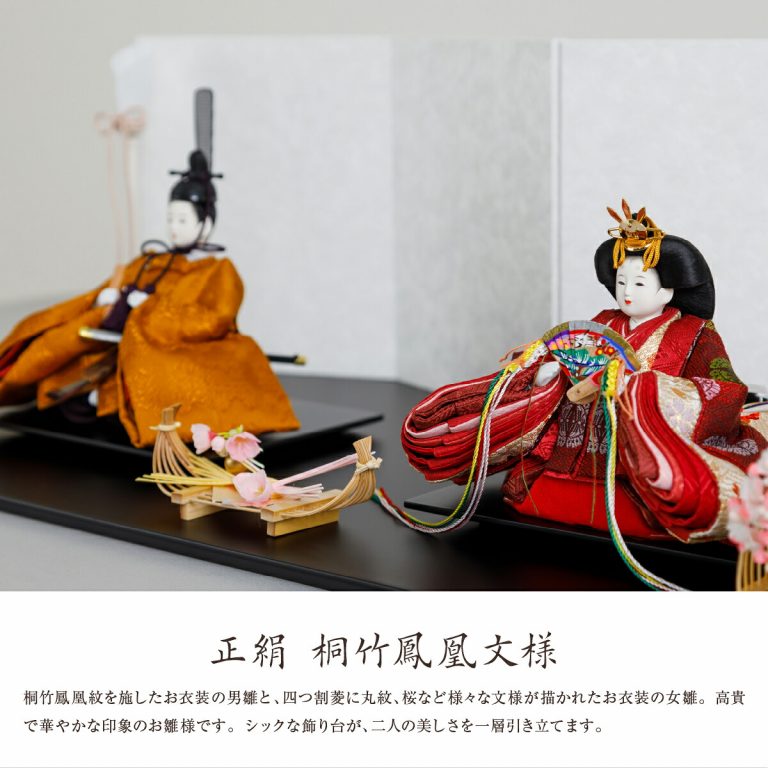 雛人形 柴田家千代 親王飾り 創作雛 正絹 桐竹鳳凰文様